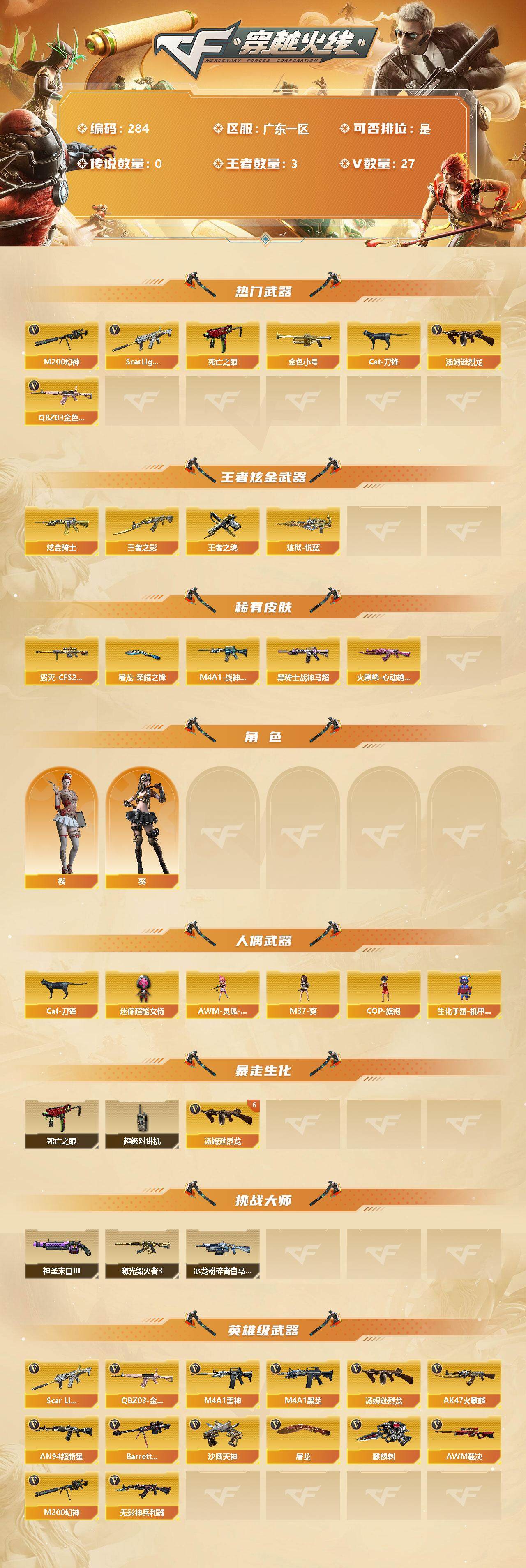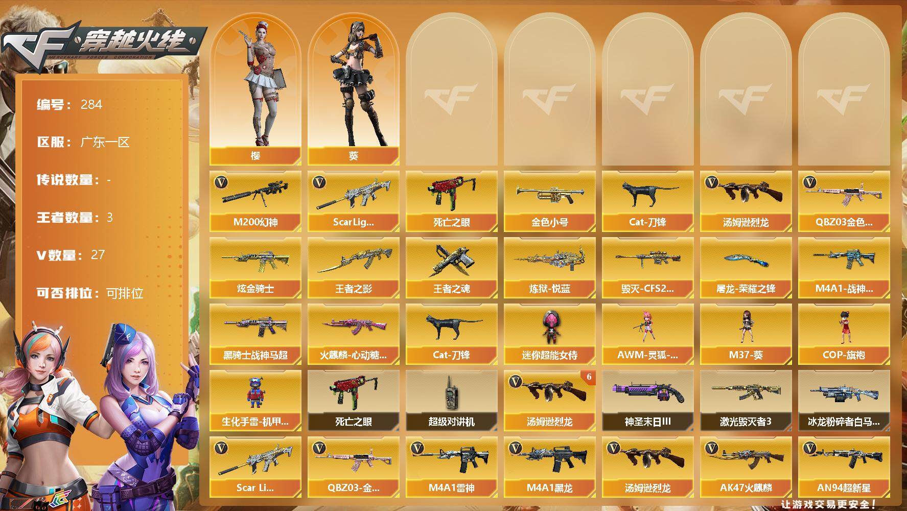 [13035372]【284】25V/84级/将帅/3王者/1炫金/2英雄/QBZ03-金色蔷薇/Scar Light-白虎/M200-幻神/死亡之眼/金色小号/Cat-刀锋/汤姆逊-烈龙/炫金黑骑士/炼狱-悦蓝/王者之影/王者之魂/M4A1-战神赵云/火麒麟-心动糖果/黑骑士-战神马超/毁灭-CFS2020/屠龙-荣耀之锋/葵/樱/AWM-灵狐-15周年嘉年华/M37-葵/COP-旗袍/迷你超能女侍/生化手雷-机甲核心/超级对讲机/6烈龙/神圣爆裂者-末日/激光毁灭者/冰龙粉碎者-白马银枪/无影-神兵利器/M4A1-雷神/M4A1-黑龙/AK47-火麒麟/AN94-超新星/Barrett-毁灭/AWM-裁决/沙鹰-天神/麒麟刺/屠龙