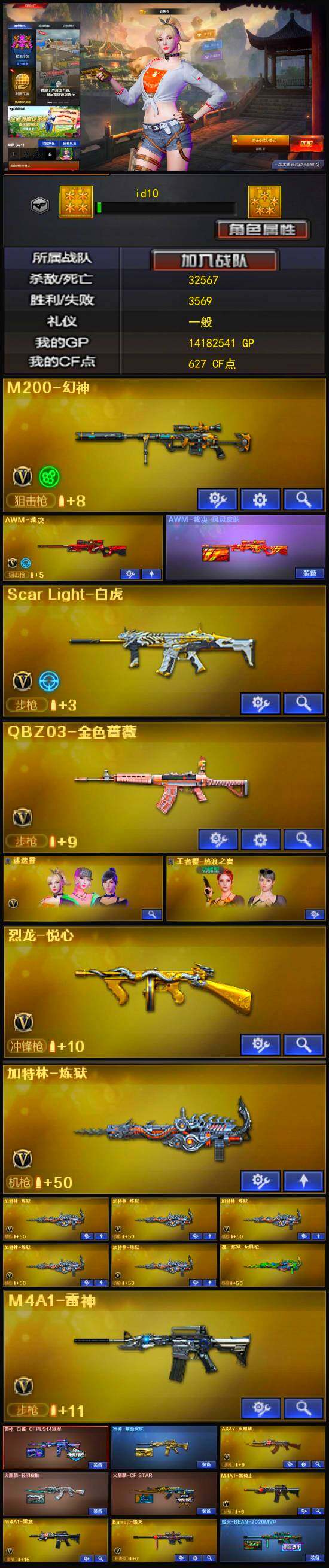 - [12622337]河北一区-31V-9王者-2炫金 【热门武器】:QBZ03-金色蔷薇,M200-竞技荣光,白虎-电玩蓝兔,M4A1-黑骑士,COP-堕天神 【王者炫金武器】:炫金无影,炫金千变,王者猎神 【音效卡】:M4A1-黑骑士音效卡,QBZ03-金色蔷薇音效卡 【稀有皮肤】:雷神-荣耀之魄,火麒麟-AG战队皮肤,火麒麟-百城,火麒麟-心动糖果,黑骑士-暗月,毁灭-BEAN-2020MVP,屠龙-荣耀之锋 【角色】:青霞仙子 【人偶武器】:AWM-灵狐-15周年嘉年华,迷你艾比,迷你超能女侍,迷你裂空之翼,夺魂,迷你牛牛,深渊终结者手雷 【暴走生化】:超级对讲机 【挑战大师】:激光毁灭者III-白马银枪,冰龙粉碎者-白马银枪 【英雄级武器】:M200-竞技荣光,柯尔特-竞技荣光,擎天-竞技荣光,高爆手雷-竞技荣光,烟雾弹-竞技荣光,闪光弹-竞技荣光,马来剑-夜魔,COP-堕天神,QBZ03-金色蔷薇,白虎-电玩蓝兔,无影-神兵利器,M4A1-雷神*2,M4A1-黑骑士,AK47-火麒麟*2,AWM-天龙,Barrett-毁灭,AWM-裁决,黑武士-锦绣游龙,沙鹰-天神,麒麟刺,擎天,屠龙*2 【特殊枪械】:1黑骑士