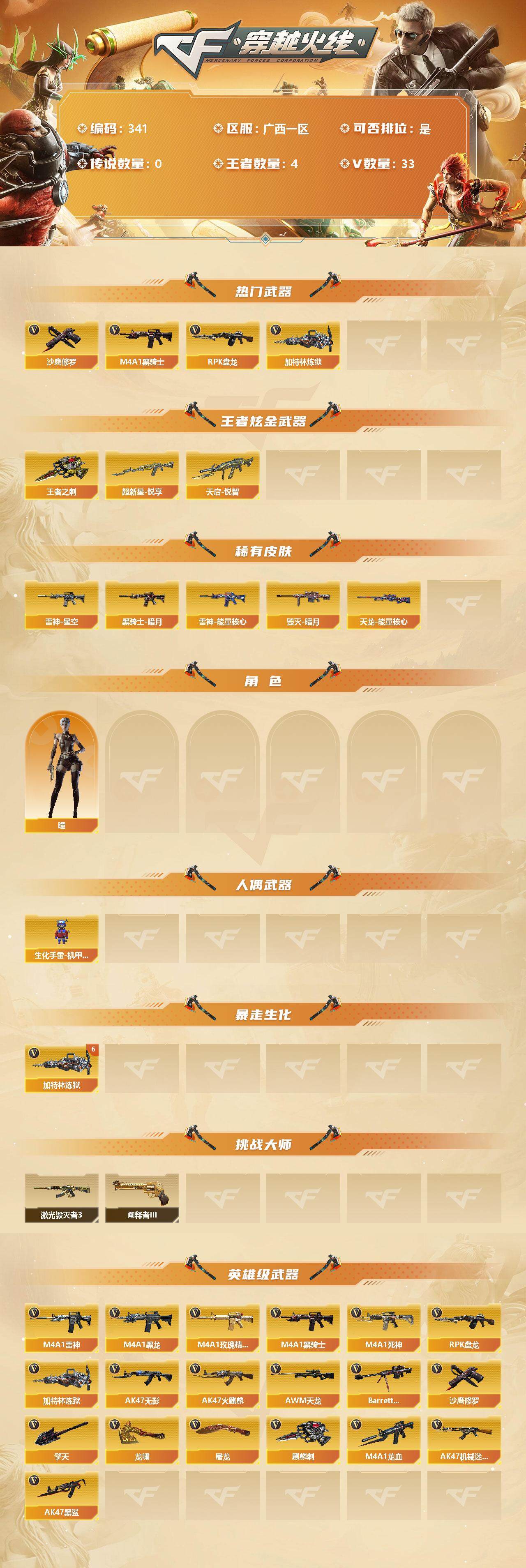 [13036135]【341】32V/100级/元帅/4王者/1英雄/M4A1-黑骑士/RPK-盘龙/加特林-炼狱/沙鹰-修罗/超新星-悦享/天启-悦智/王者之刺/雷神-能量核心/雷神-星空/黑骑士-暗月/毁灭-暗月/天龙-能量核心/瞳/生化手雷-机甲核心/6炼狱/阐释者/激光毁灭者/AK47-火麒麟/M4A1-黑龙/M4A1-雷神/AK47-无影/M4A1-死神/AK47-机械迷城/AK47-黑鲨/M4A1-龙血/M4A1-玫瑰精灵/AWM-天龙/Barrett-毁灭/屠龙/龙啸/擎天/麒麟刺