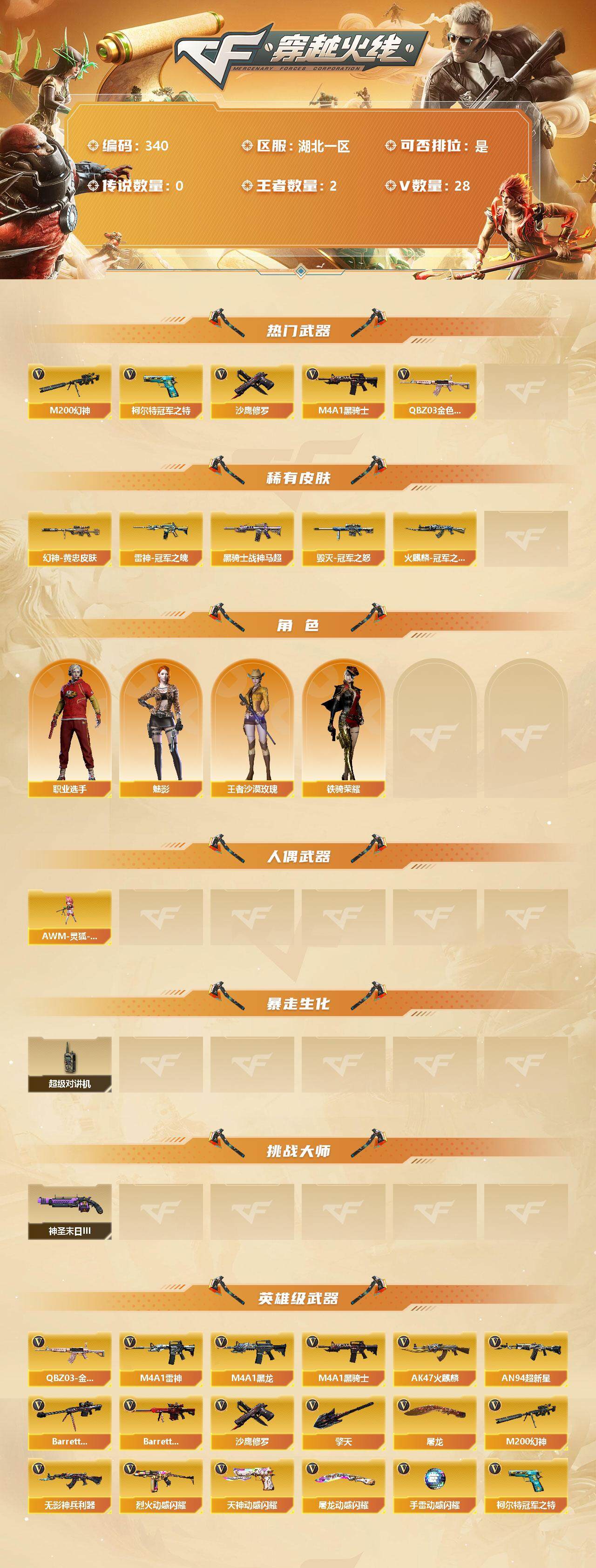 [13036387]【340】26V/102级/荣耀元首/2王者/2英雄/QBZ03-金色蔷薇/M200-幻神/柯尔特-冠军之特/M4A1-黑骑士/沙鹰-修罗/M200-幻神-黄忠/雷神冠军之魄/火麒麟-冠军之心/黑骑士-战神马超/毁灭-冠军之怒/魅影/王者-沙漠玫瑰/铁骑荣耀/职业选手/AWM-灵狐-15周年嘉年华/超级对讲机/神圣爆裂者-末日/AK47-火麒麟/M4A1-黑龙/M4A1-雷神/AN94-超新星/无影-神兵利器/烈火-动感闪耀/Barrett-毁灭/Barrett-极光/天神-动感闪耀/屠龙/擎天/屠龙-动感闪耀/手雷-动感闪耀