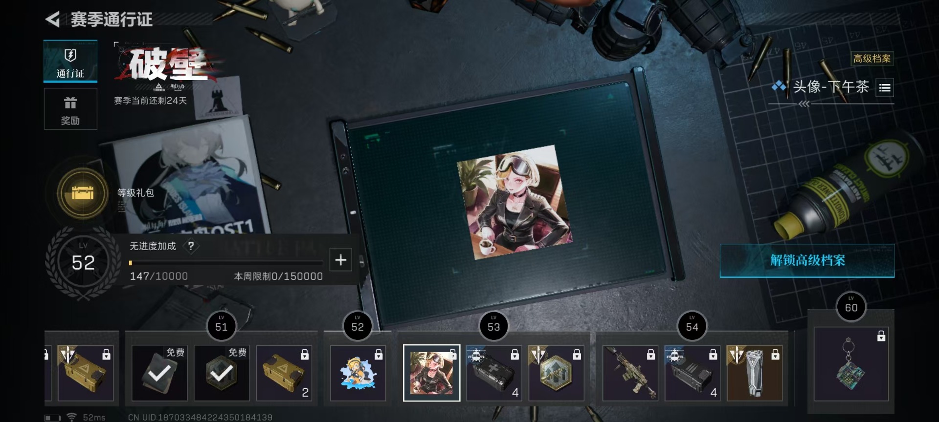 - [11547053]总资产:92.9M 9传说枪械 哈夫币:90.123K 进阶安全箱(9.17到期) 可二次 可修改实名 烽火地带段位:青铜 全面战场段位:无段位 传说武器皮肤:M4A1突击步枪-阿米娅,复合弓-黑-天际线,AWM狙击步枪-捞点薯条,腾龙突击步枪-捞点薯条,93R-捞点薯条,AK-12突击步枪-特斯拉线圈,SR-3M紧凑突击步枪-特斯拉线圈,UZI冲锋枪-特斯拉线圈,勇士冲锋枪-能天使-午夜邮差 史诗武器皮肤:SV-98狙击步枪-林中猎手,M250通用机枪-囚徒,SCAR-H战斗步枪-囚徒,QBZ95-1突击步枪-曙光