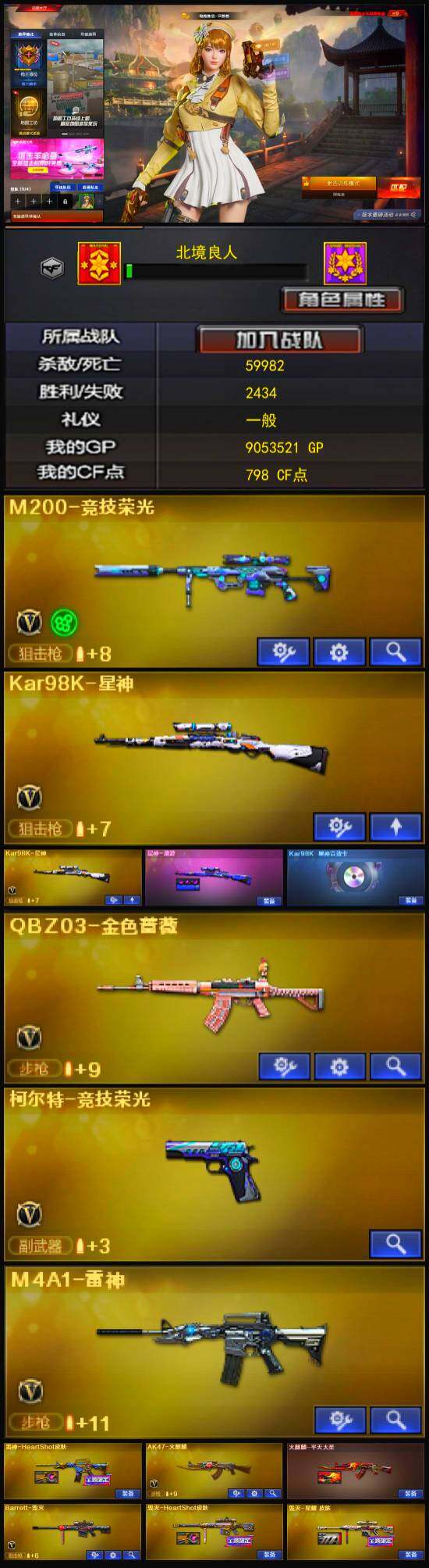 【热门武器】:QBZ03-金色蔷薇,M200-竞技荣光,Kar98K-星神*2