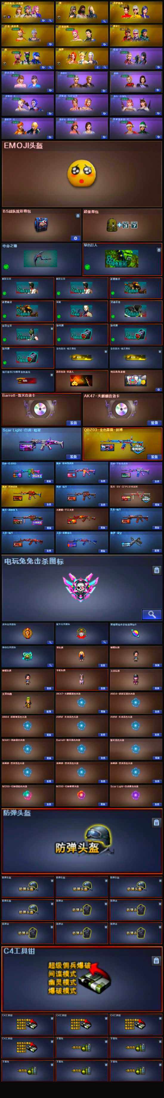 【英雄级武器】:AK47-火麒麟,M4A1-雷神,M4A1-黑骑士,AK47-无影,M4A1-死神,M4A1-武圣,AK47-黑鲨,HK417-朱雀,Scar Light-白虎,QBZ03-独角-IV,M4A1-玫瑰精灵,QBZ03-金色蔷薇,M4A1-猎神,AK-47-猩红传说,王者火魄-觉醒版,AK47-B-常胜将军,王者之烈-觉醒版,AWM-天龙*2,Barrett-毁灭*2,AWM-裁决,M200-幻神,Barrett-朱雀,M200-竞技荣光,炼狱-百战金芒,盘龙-悦心-觉醒版,炼狱-悦蓝-觉醒版,汤姆逊-烈龙*5,AA-12-雷霆,沙鹰-修罗*4,沙鹰-天神,USP-雷暴,COP 357-雷霆王者-觉醒版,Glock18-武圣,屠龙*3,龙啸,麒麟刺-堕天神,擎天*2,麒麟刺,龙啸-堕天神,麒麟刺-百战金芒,高爆手雷-堕天神,高爆手雷-幻灵*2,高爆手雷-雷霆王者,闪光弹-堕天神,闪光弹-幻灵*2,烟雾弹-堕天神,烟雾弹-幻灵,Barrett-碧霄极光