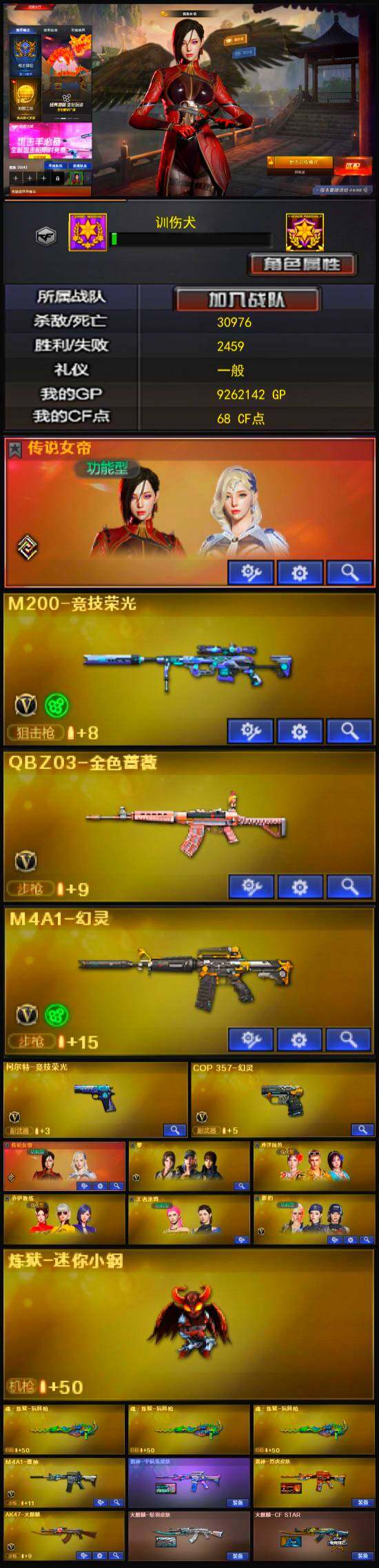 - [13035982]【74】52V/101级/大元首/3王者/3炫金/2英雄/M4A1青龙/死亡之眼/M4A1-黑骑士/汤姆逊-烈龙/RPK-盘龙/加特林-炼狱/沙鹰-修罗/炫金天神/炫金毁灭/炫金黑武士/炼狱-悦蓝/雷神-能量核心/炼狱-星空/毁灭-暗月/天龙-能量核心/天神-暗月/王者-零/零/AWM-灵狐-15周年嘉年华/COP-旗袍/迷你牛魔王/迷你牛牛/生化手雷-机甲核心/6烈龙/M4A1-武圣/M4A1-雷神/M4A1-黑龙/M4A1-死神/AK47-无影/AK47-火麒麟/AWM-天龙/Barrett-毁灭/Barrett-极光/AWM-裁决/AK47-机械迷城/Barrett-朱雀/M4A1-猎神/M4A1-千变/沙鹰-天神/麒麟刺/擎天/龙啸/屠龙