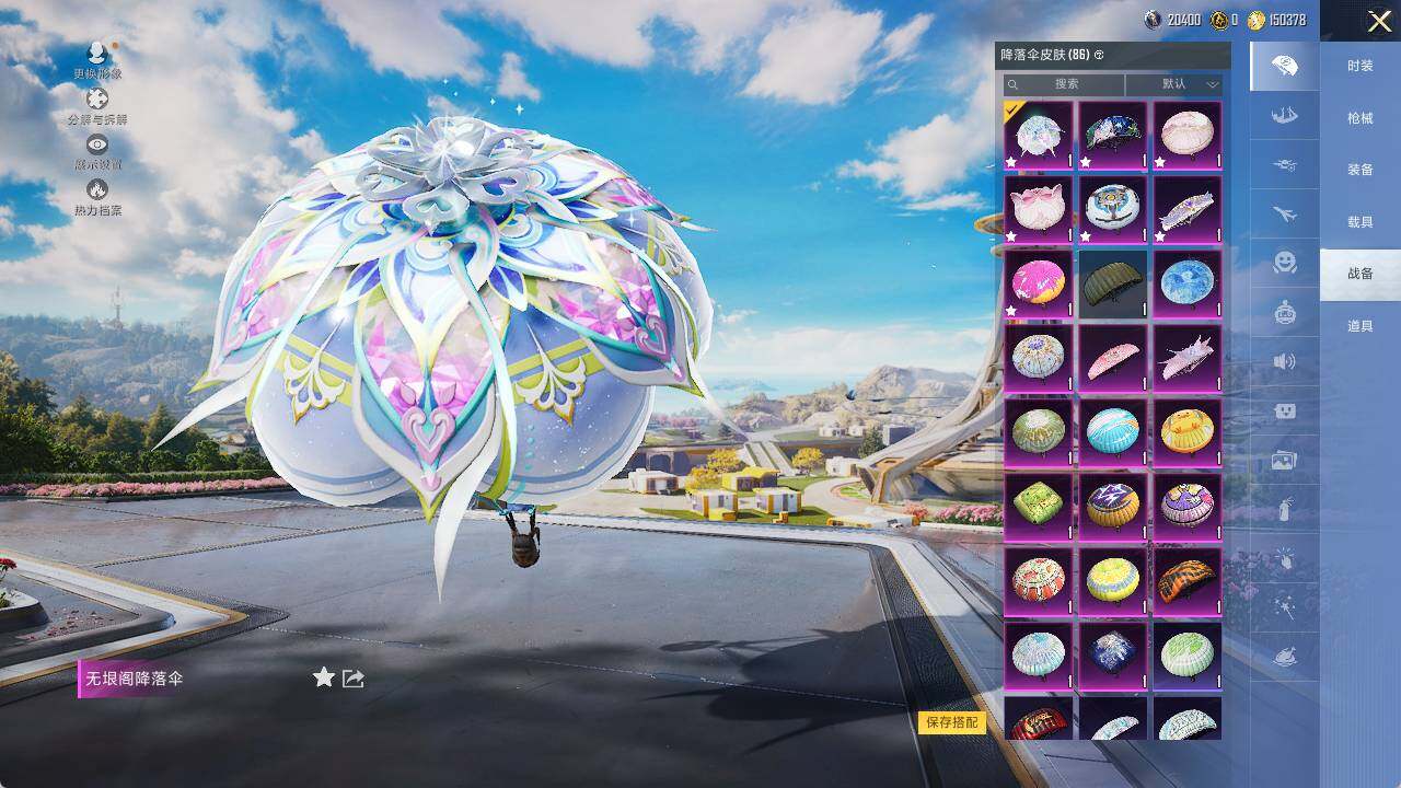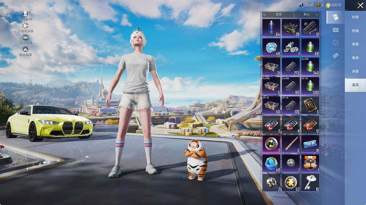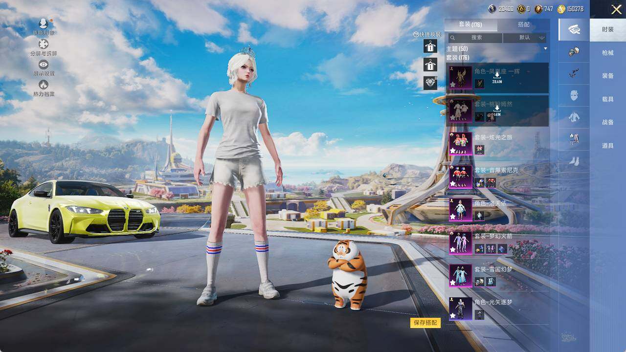 AKM-炫紫旋律,M416-至情至圣,AUG-超新星,Kar98K-巳巳如意,MG3-洛神天依,烟雾弹-猫咪绅士,破片手榴弹-粉粉猫爪