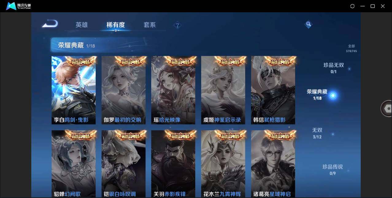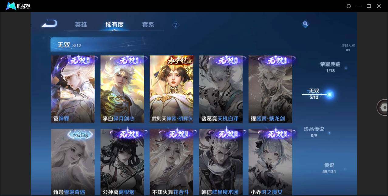 [13067254]安卓Q-V10-至尊星耀V段位-128英雄-377皮肤-1典藏-3无双-45传说-119史诗