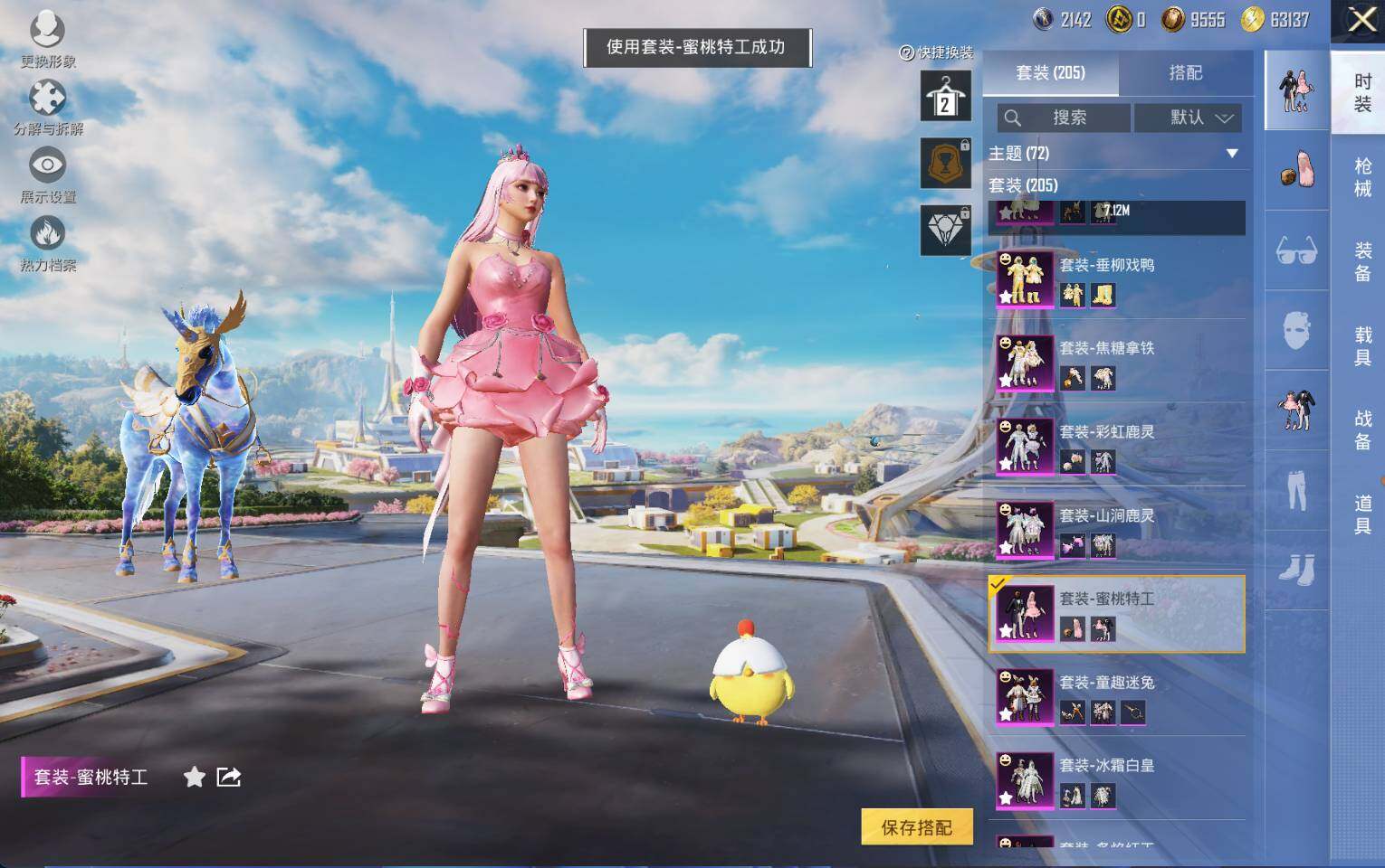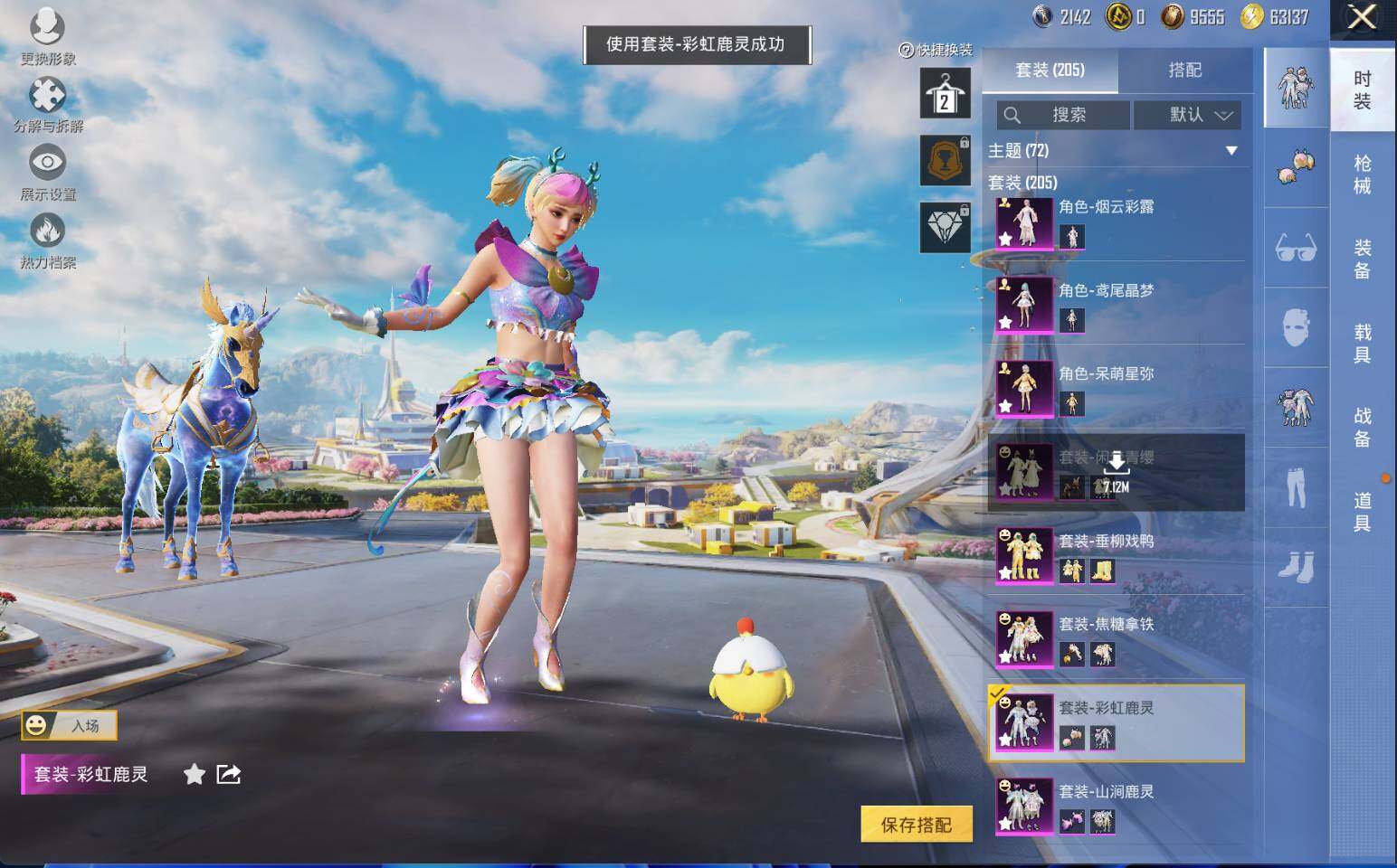 套装-蝶舞迷情,角色-呆萌星弥,套装-山涧鹿灵,套装-天使彩虹糖,套装-宝贝奶油派,套装-彩虹鹿灵,套装-蜜桃特工,焦糖拿铁套装,套装-炙焰红王,套装-垂柳戏鸭,套装-闲梦青缨,角色-烟云彩露,套装-缤纷油彩,角色-鸢尾晶梦