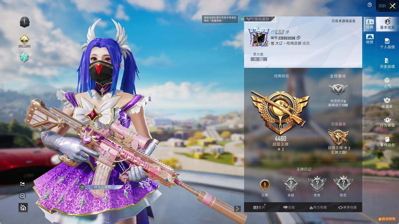 - PX_2102721-贵族等级: V5 英雄数: 94 皮肤数: 50 传说皮: 霜月吟,澜逐花归海