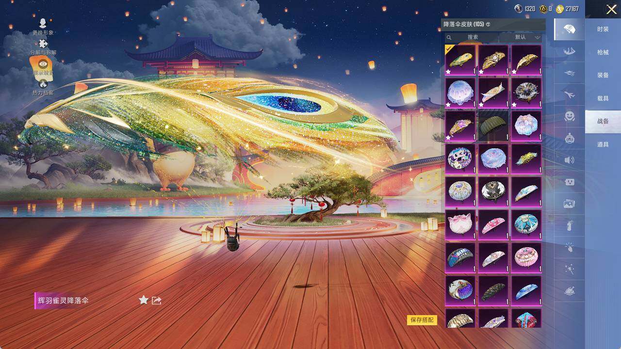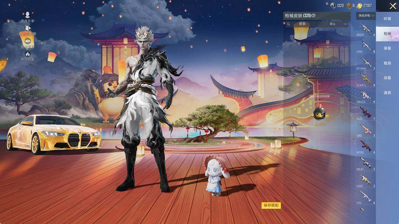 AKM-绿萝繁花,SCAR-L-梦幻火箭,SCAR-L-金蛇镇世,M416-全功率超战,M416-墨龙九天,GROZA-巴啦啦小魔仙,AUG-星之彼岸,蜜獾-辉耀战甲,UMP45-量子极限,UMP45-宇宙意志,AKS-74U-信仰神谕,P90-沙丘之主,Kar98K-巳巳如意,Kar98K-圣域龙灵,M24-镜域双华,AMR-鸢尾晶梦,M417-第五大道,M200-梦海之灵,MK12-雪月幻音,DP-28-千金淑猫,MG3-酷泡奶龙,PKM-守护天翼,MG-36-幻梦之森,平底锅-林间仙鹿,烟雾弹-猫咪绅士,破片手榴弹-粉粉猫爪