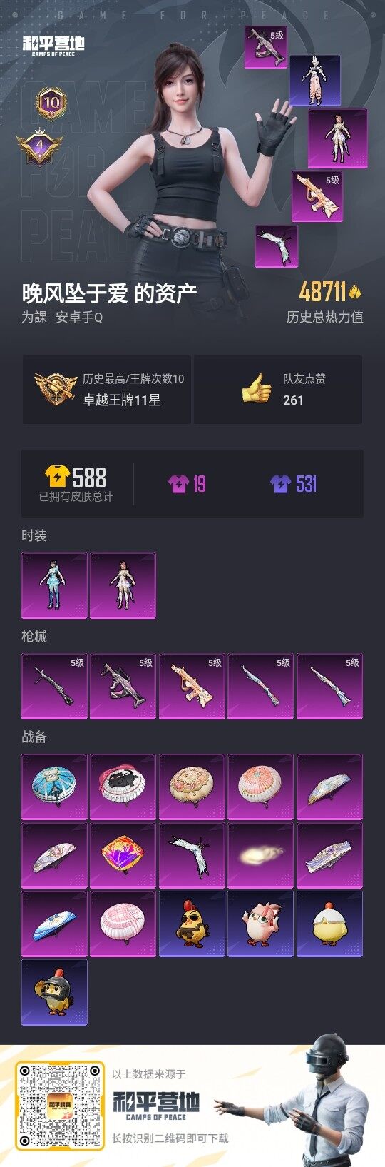 - PX_2104195- 安卓手Q-13王牌印记-6粉装-6特效枪-6载具-56017热力值-106套装-146枪皮-3卓越印记-1传奇印记 【6粉装】,雪国幻梦,幻彩电音,精灵娃娃,酣梦娃娃,彩虹鹿灵,绮梦青鸾 【6特效枪】AKM-梦之光华-4级 M416-五爪金龙-7级 Kar98K-巳巳如意-5级 Mk14-甜梦熊击-5级 UMP45-雪国精灵-7级 AKS-74U-星穹咏叹调-7级 【6稀