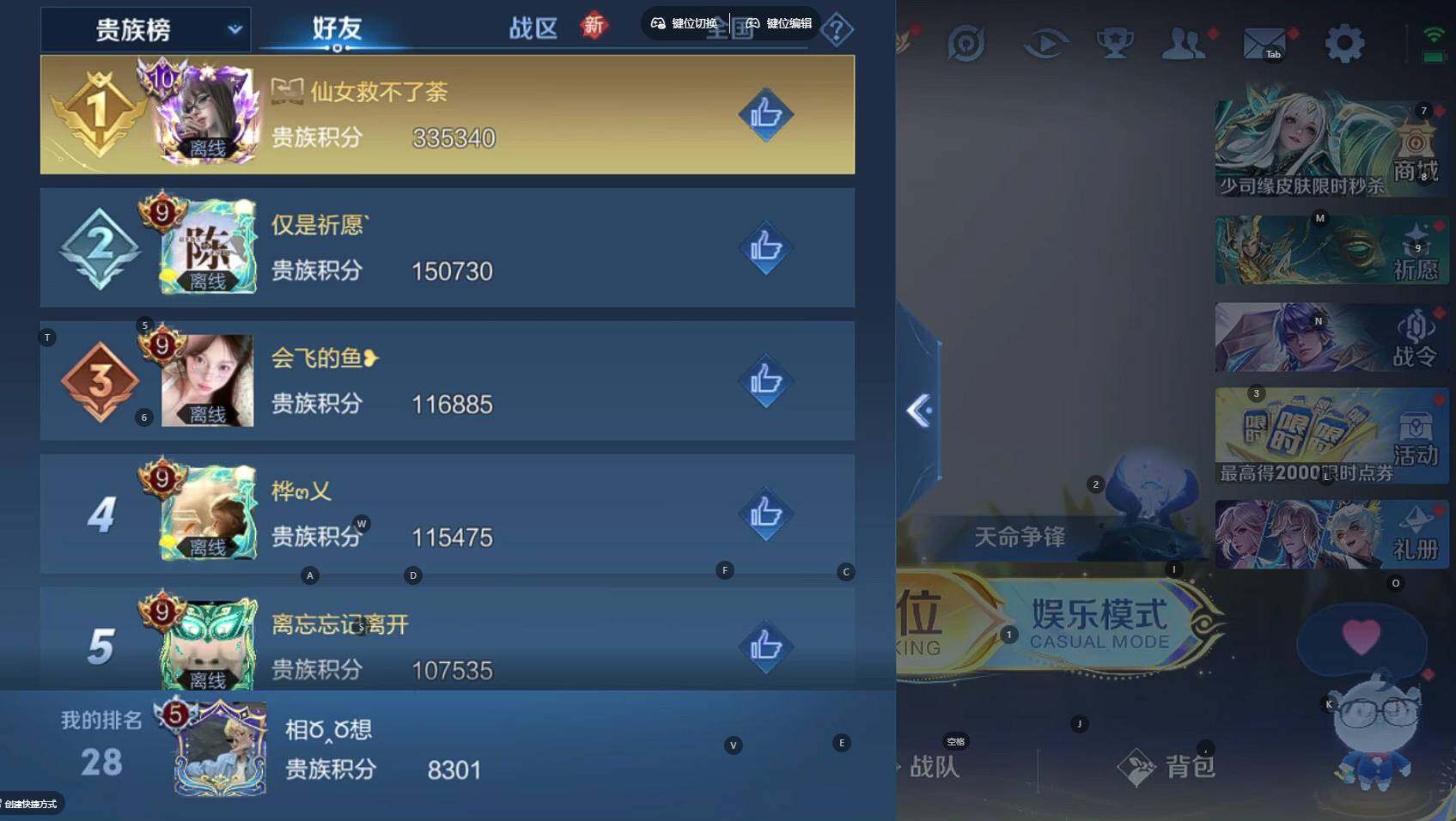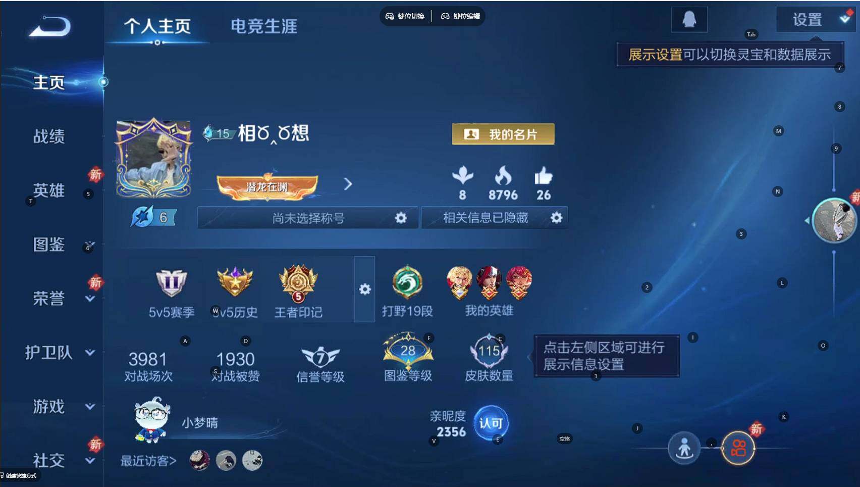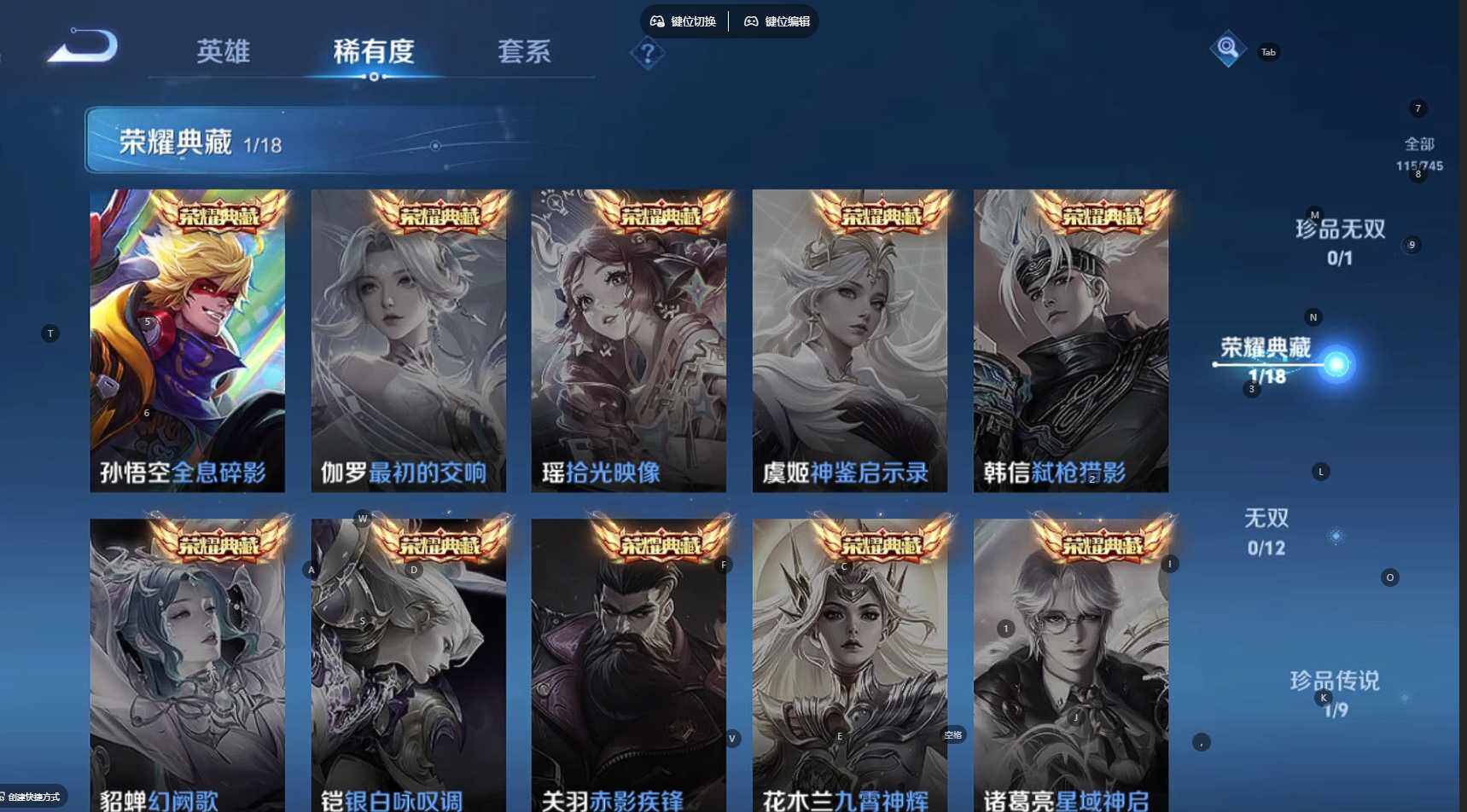 - PX_2096852-实名: 可修改 贵族等级: V5 英雄数: 123 皮肤数: 118 荣耀水晶: 幻阙歌 限定皮: 鸣野蒿,逐霄战戟,愿照·众生和