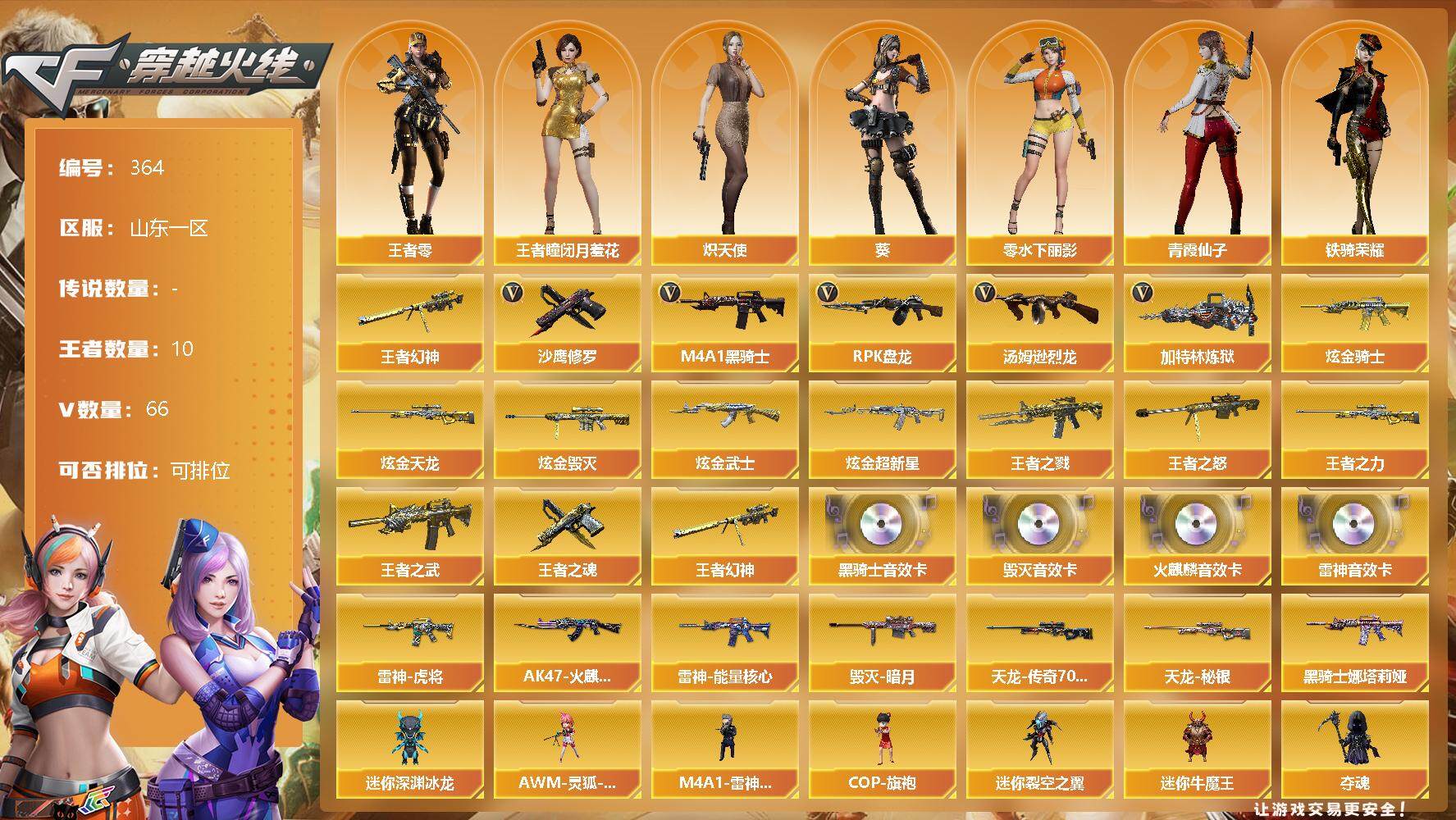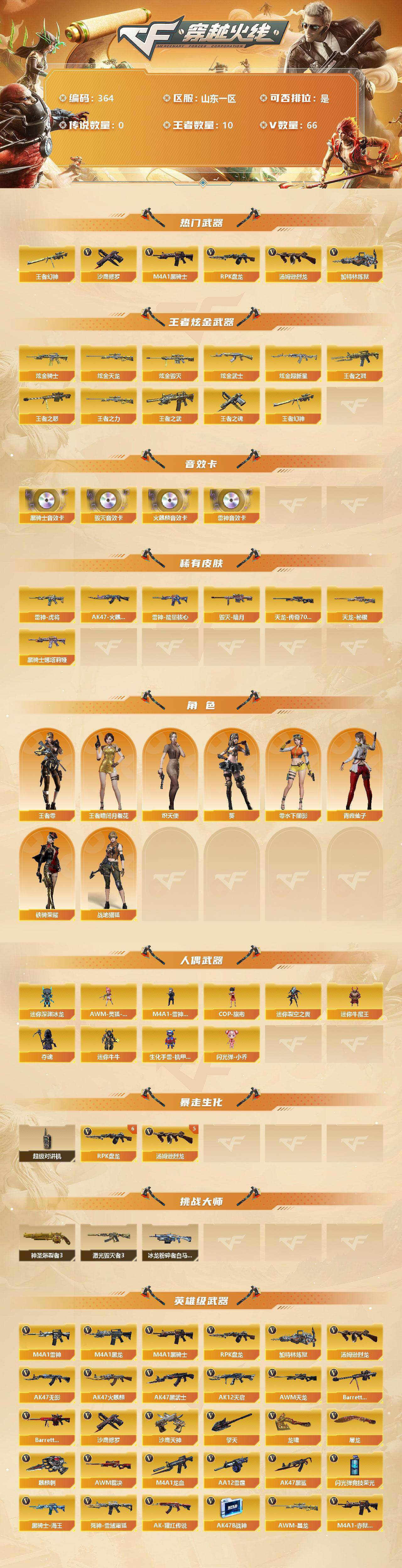 [13077227]【364】63V/102级/荣耀元首/10王者/5炫金/3英雄/王者幻神/M4A1-黑骑士/汤姆逊-烈龙/RPK-盘龙/加特林-炼狱/沙鹰-修罗/王者之戮/王者之武/王者之怒/王者之力/王者之魂/炫金黑骑士/炫金天龙/炫金毁灭/炫金黑武士/炫金超新星/AK47-火麒麟音效卡/M4A1-雷神音效卡/M4A1-黑骑士音效卡/Barrett-毁灭音效卡/Barrett-碧霄极光音效卡/麒麟刺-百战金芒-盛典舞曲音效卡/炼狱-百战金芒-庆典舞曲音效卡/死神-雪域霜狐-怀旧音效卡/COP 357-雪域霜狐-怀旧音效卡/雷神-能量核心/雷神-虎将/M4A1-再燃火线/AK47-火麒麟-传奇EVEN/毁灭-暗月/黑龙-能量核心/M4A1-黑骑士-娜塔莉娅/无影-能量核心/天启-暗月/战神-粉色甜心皮肤/战神-紫绶金章皮肤/战神-流金岁月皮肤/天龙-秘银/AWM-天龙-传奇70KG/极光-能量核心/Barrett-金色蔷薇-蛇姬 皮肤/修罗-能量核心/屠龙-破浪逐光 皮肤/龙啸-蛇姬 皮肤/轻型军用手斧-再燃火线/葵/战地猎狐/王者-瞳-闭月羞花/王者-零/零-水下丽影/炽天使/铁骑荣耀/青霞仙子/M4A1-雷神-精英刀锋/AWM-灵狐-15周年嘉年华/COP-旗袍/迷你深渊冰龙/迷你裂空之翼/迷你牛魔王/夺魂/迷你牛牛/生化手雷-机甲核心/闪光弹-小乔/超级对讲机/6盘龙/5烈龙/神圣爆裂者/冰龙粉碎者-白马银枪/激光毁灭者/AK47-火麒麟/M4A1-黑龙/M4A1-雷神/AK47-无影/AK47-黑武士/AK12-天启/AK47-黑鲨/M4A1-龙血/死神-雪域霜狐/SCAR Light-玄豹/王者之势-觉醒版/AK-47-猩红传说/AK47-B-战神/黑骑士-海王/黑武士-CF网剧冠军/AWM-天龙/Barrett-毁灭/Barrett-极光/AWM-裁决/炼狱-百战金芒/AA-12-雷霆/沙鹰-天神/天神-CF网剧冠军/屠龙/龙啸/擎天/麒麟刺/擎天-CF网剧冠军/麒麟刺-百战金芒/闪光弹-竞技荣光/M4A1-赤狱骑士/AWM-昌龙/Barrett-碧霄极光