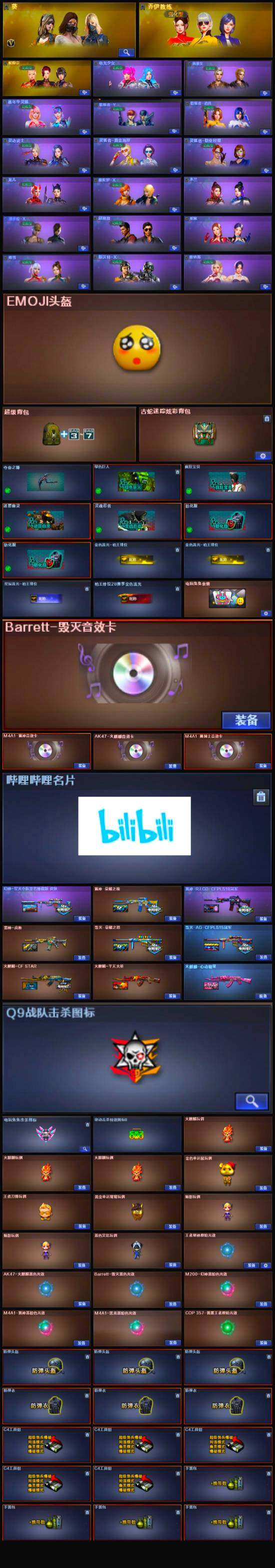 【音效卡】:AK47-火麒麟音效卡,M4A1-雷神音效卡,M4A1-黑骑士音效卡,Barrett-毁灭音效卡