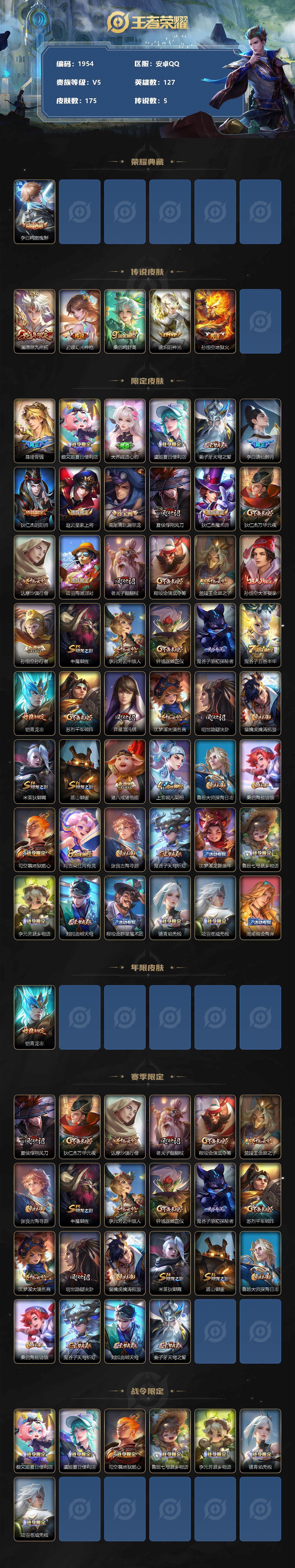 [13082417]安卓Q-V4-永恒钻石III段位-127英雄-175皮肤-1典藏-0珍品无双-0无双-0珍品传说-5传说-36史诗