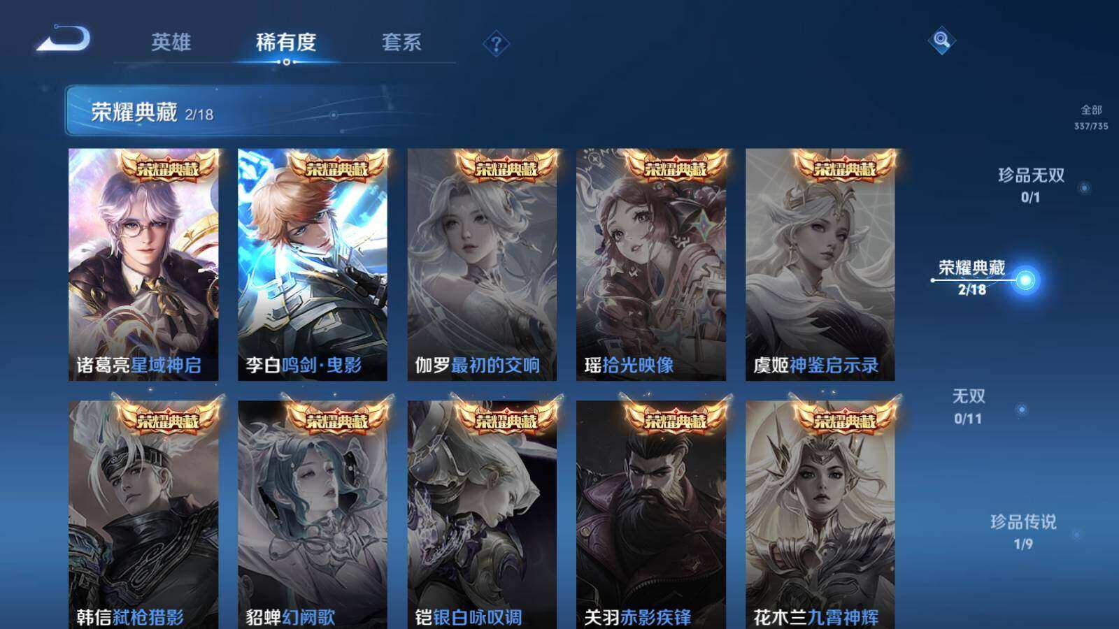 - [12584520]安卓Q-V7-至尊星耀III段位-125英雄-178皮肤-1典藏-0珍品无双-0无双-3珍品传说-1传说-49史诗 【荣耀典藏】:孙悟空全息碎影 【珍品传说】:马可波罗怪盗基德,鲁班七号江户川柯南,暃朽木白哉 【传说皮肤】:桑启鸣野蒿 【限定皮肤】:狄仁杰阴阳师,赵云皇家上将,庄周高山流水,高渐离死亡摇滚,高渐离玩趣恶龙,周瑜赤莲之焰,夏侯惇朔风刀,甄姬游园惊梦,狄仁杰魔术师,狄仁杰万华元夜,达摩沙漠行僧,项羽海滩派对,老夫子醍醐杖,程咬金演武夺筹,兰陵王驯魔猎人,兰陵王金庭之子,孙悟空至尊宝,牛魔御旌,李元芳银河之约,李元芳云中旅人,钟馗驱傩正仪,杨玉环遇见飞天,雅典娜单词大作战,雅典娜黎明之约,鬼谷子原初探秘者,鬼谷子五谷丰年,苏烈千军破阵,百里玄策原初追逐者,弈星混沌棋,沈梦溪星空之诺,沈梦溪大漠名商,明世隐疑决卦,裴擒虎李小龙,云中君纤云弄巧,盾山御銮,上官婉儿梁祝,蒙犽狂想玩偶喵 【赛季限定】:夏侯惇朔风刀,狄仁杰万华元夜,达摩沙漠行僧,老夫子醍醐杖,程咬金演武夺筹,兰陵王金庭之子,牛魔御旌,李元芳云中旅人,钟馗驱傩正仪,雅典娜黎明之约,鬼谷子原初探秘者,苏烈千军破阵,百里玄策原初追逐者,弈星混沌棋,沈梦溪大漠名商,明世隐疑决卦,盾山御銮 【战令限定】:周瑜赤莲之焰,兰陵王驯魔猎人,李元芳银河之约,雅典娜单词大作战,沈梦溪星空之诺,蒙犽狂想玩偶喵 【史诗皮肤】:鲁班七号电玩小子,赵云皇家上将,貂蝉圣诞恋歌,甄姬冰雪圆舞曲,王昭君偶像歌手,狄仁杰魔术师,宫本武藏鬼剑武藏,孙尚香水果甜心,墨子金属风暴,吕布圣诞狂欢,曹操幽灵船长,吕布末日机甲,孙悟空至尊宝,花木兰水晶猎龙者,刘邦德古拉伯爵,夏侯惇乘风破浪,小乔缤纷独角兽,兰陵王暗隐猎兽者,诸葛亮黄金分割率,甄姬游园惊梦,亚瑟心灵战警,雅典娜冰冠公主,安琪拉心灵骇客,百里守约特工魅影,铠曙光守护者,蔡文姬舞动绿茵,刘禅天才门将,李元芳逐浪之夏,程咬金功夫厨神,白起星夜王子,阿轲节奏热浪,杨玉环遇见飞天,大乔猫狗日记,狄仁杰鹰眼统帅,兰陵王驯魔猎人,上官婉儿梁祝,李元芳银河之约,孙尚香时之恋人,蒙犽狂想玩偶喵,百里玄策原初追逐者,裴擒虎李小龙,云中君纤云弄巧,庄周高山流水,雅典娜黎明之约,鬼谷子五谷丰年,狂铁龙之律动,后羿石田雨龙,黄忠百相守梦,公孙离涂山容容 【其他皮肤】:项羽海滩派对,韩信教廷特使,韩信街头