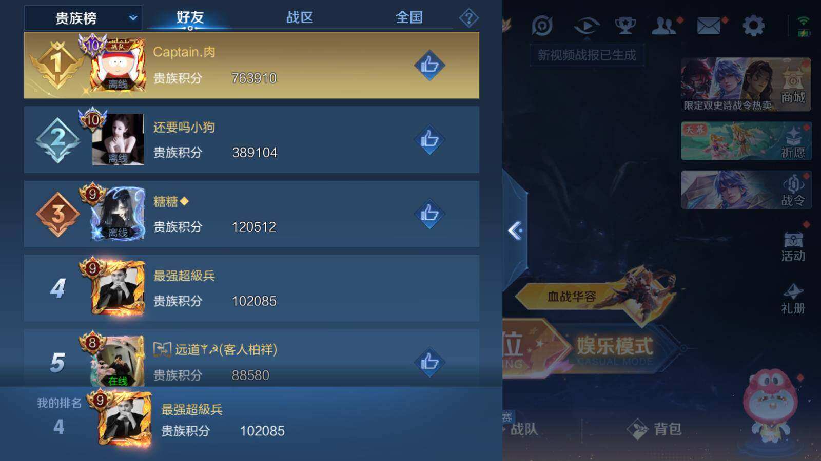 [13083494]有二次-安卓-102085贵族积分-V9-发育路41段-126英雄-337皮肤-3水-1珍品传说-28传说-86史诗-3星元