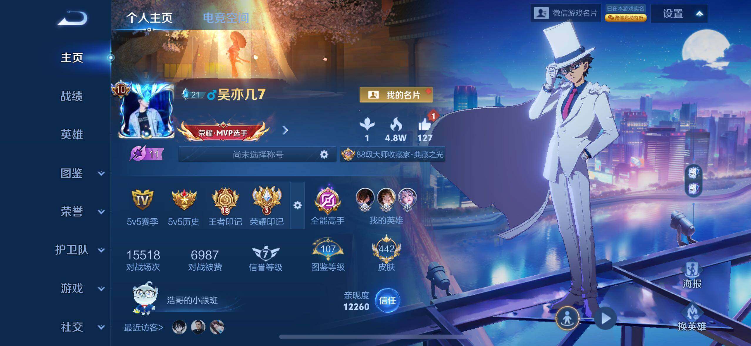 - PX_1988012-【怪盗基德至尊宝李逍遥v7打野号11传说 宫本狄仁杰星传说】:安卓Q-V7-至尊星耀IV段位-122英雄-222皮肤-0典藏-0无双-1珍品传说-11传说-57史诗 【珍品传说】:马可波罗怪盗基德 【内测皮肤】:嬴政优雅恋人,狂铁特工战影 【传说皮肤】:狄仁杰超时空战士,宫本武藏地狱之眼,李白凤求凰,梦奇胖达荣荣,李信一念神魔,孙悟空零号赤焰,曜李逍遥,亚瑟追逃游戏,桑启鸣野