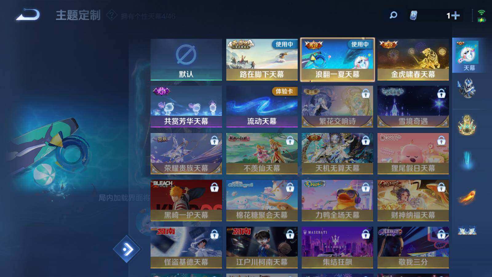 夏侯惇朔风刀,明世隐疑决卦,老夫子醍醐杖,鬼谷子原初探秘者,狄仁杰万华元夜,程咬金演武夺筹,钟馗驱傩正仪,苏烈千军破阵,女娲朔望之晖,沈梦溪星空之诺,李元芳银河之约,刘邦夺宝奇兵,蒙犽狂想玩偶喵,元歌云间偶戏,弈星混沌棋,达摩沙漠行僧,兰陵王金庭之子,沈梦溪大漠名商,李元芳云中旅人,桑启海盐诗旅,裴擒虎擒涛扼浪,鲁班大师探海日志,张良古海寻踪,项羽苍威无极,镜青焰无极