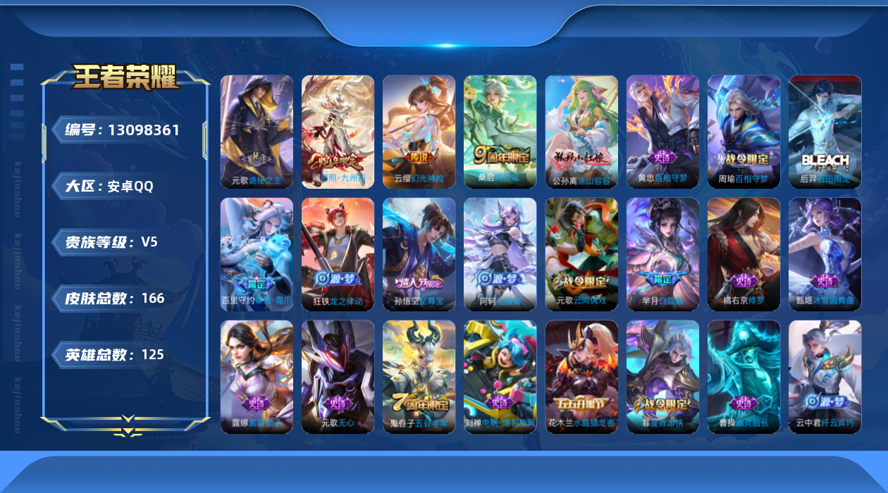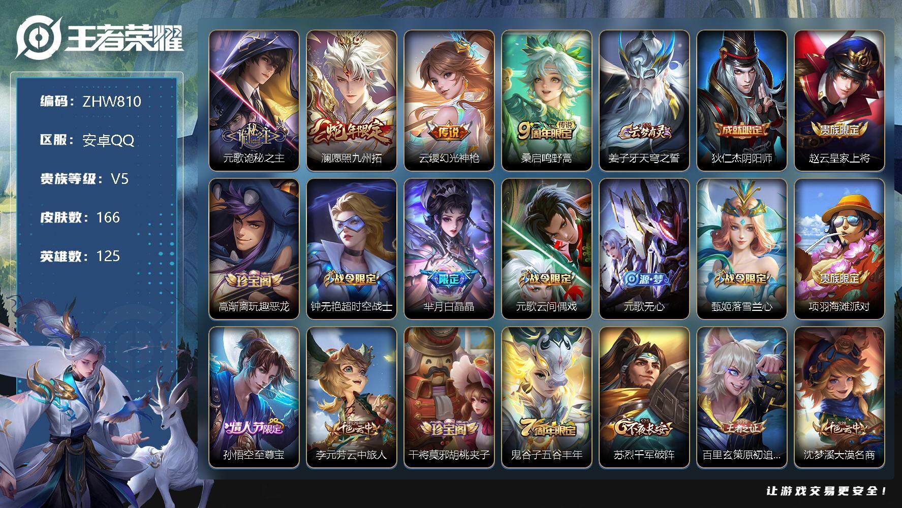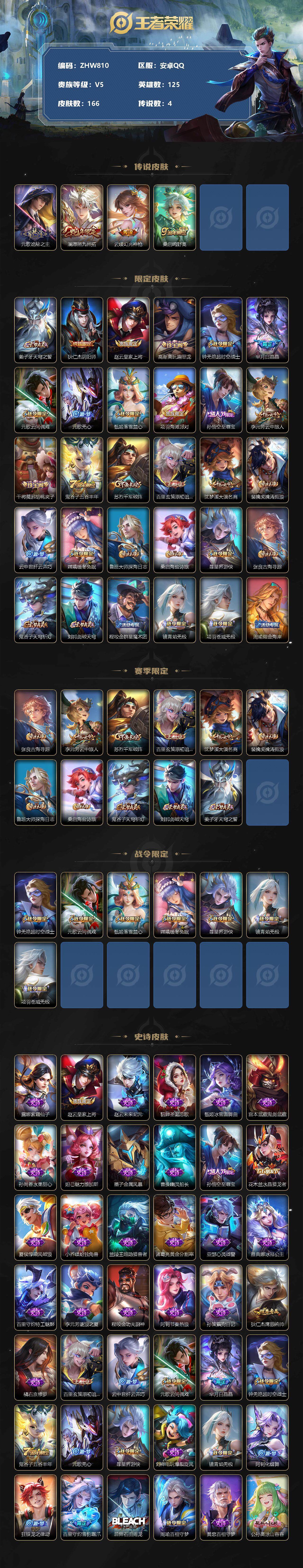 [13098361]安卓Q-V5-至尊星耀V段位-125英雄-166皮肤-4传说-42史诗