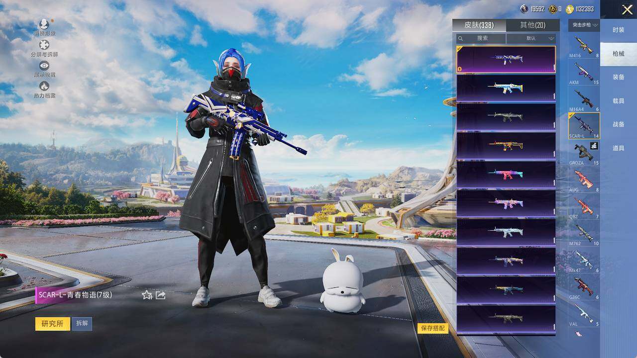 SCAR-L-青春物语,AUG-妙趣可丽,M762-激战未来,UMP45-恐龙拽拽,野牛-流星咚咚,Kar98K-巳巳如意,MG3-酷泡奶龙