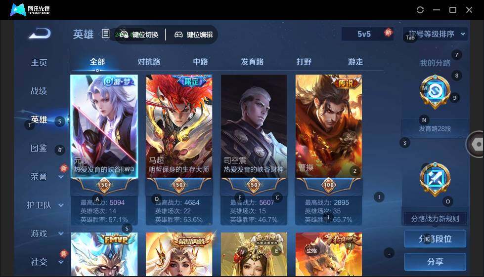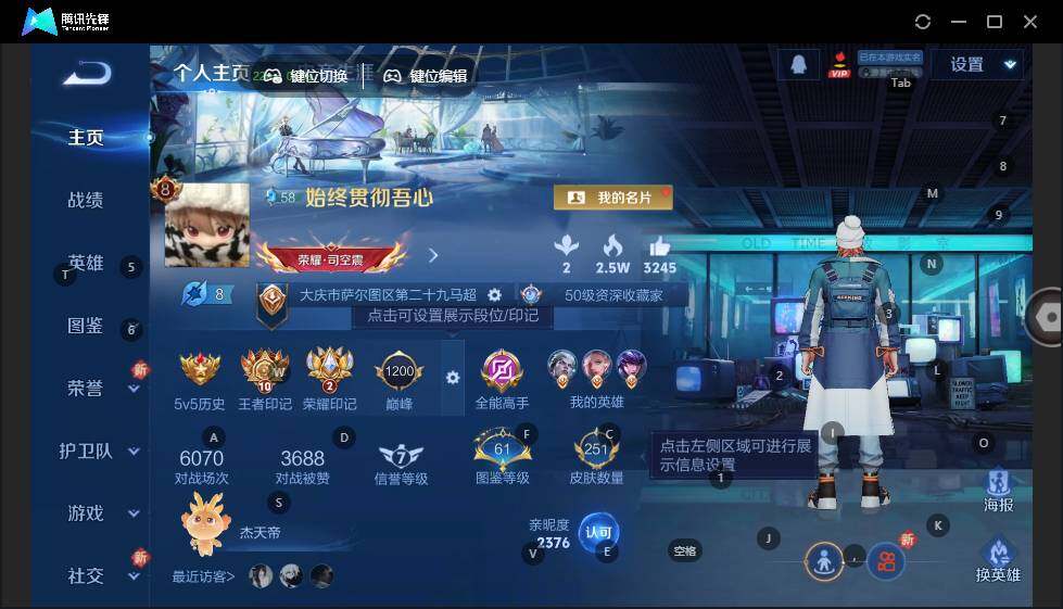 - [12061078]V7 6传说 123英雄 209皮肤 可修改实名 优质装备:炽阳神光,末日机甲-孙尚香(绿蚂蚱),地狱火,地狱之眼,无双飞将 珍宝阁皮:妄想食味,胡桃夹子 限定皮:逐霄战戟,鸣野蒿,至尊宝,五谷丰年,李小龙,逐梦之影,大圣娶亲,蜜橘之夏 史诗皮:鸭鸭历险记-刘禅,化蝶舞,龙之律动,茶境仙,紫霞仙子,白龙吟,特工魅影,千年之狐,电玩·爆裂旋风,末日机甲-吕布,乱世虎臣,修罗,水果甜心,星夜王子,德古拉伯爵,暗隐猎兽者,幽灵船长,鬼剑武藏,心灵战警,天秀·启明,纤云弄巧,繁星吟游(呼啦呼啦),缤纷独角兽,金属风暴,原初追逐者,圣诞狂欢,圣诞恋歌,鹰眼统帅,魅力维加斯,黎明之约,赏金猎手