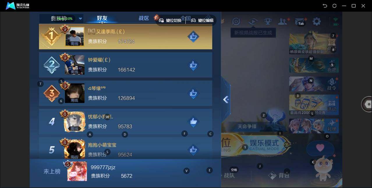 - [11471694]V8 2珍品传说 25传说 124英雄 256皮肤 可修改实名 优质装备:怪盗基德,器灵·落星盏,云鹰飞将(小将军),黄金白羊座,炽阳神光,一念神魔,末日机甲-孙尚香(绿蚂蚱),零号·赤焰,李逍遥,无双飞将,燃星之曲,电玩·雷克斯,霜月吟,澜逐花归海 传说皮:云诺千山,祥瑞亨通,幻光神枪 珍宝阁皮:妄想食味,胡桃夹子,玩趣恶龙 限定皮:愿照·千秋盛(女娲年限),逐霄战戟,鸣野蒿,白虎志(电光耗子),武陵仙君(小桃花),傲雪梅枪,前尘镜,神威(电光马子),瑞麟志(木兰年限),高山流水,诗剑行,怒海麟威,五谷丰年,游园惊梦,祈雪灵祝(雪兔子),李小龙,默契交锋-花木兰,孙行者,一生所爱,匿光追影者,寅虎·赤拳(老虎年限),山海·玄木吟(马可年限) 史诗皮:飞车小橘子,器灵·浮梦炉,星界特工,星界战将,石田雨龙,东方月初,谪仙醉月,百相守梦-黄忠,遇见神鹿,紫霞仙子,黄金分割率,千年之狐,永昼,百相守梦(刘备),电玩·爆裂旋风,江河有灵,蒙恬荣光圣徽,偶像歌手,魅语,晚萤,末日机甲-吕布,猫狗日记-孙策,节奏热浪,水果甜心,天才门将,星夜王子,德古拉伯爵,暗隐猎兽者,幽灵船长,鬼剑武藏,暗渊魔法,舞动绿茵,缤纷独角兽,月团寄思,水晶猎龙者,曙光守护者,热力回旋,金属风暴,原初追逐者,圣诞狂欢,圣诞恋歌,鹰眼统帅,暗夜贵公子,魅力维加斯,黎明之约,赏金猎手,滕王阁序,无心,未来纪元-赵云