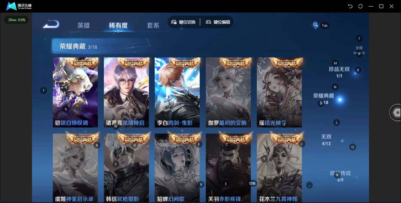 - [12030685]V7 6传说 104英雄 141皮肤 可修改实名 优质装备:云霓雀翎,淬星耀世,超时空战士-狄仁杰,涂山容容 传说皮:幻光神枪 珍宝阁皮:蔷薇恋人 限定皮:愿照·九州拓(澜年限),傲雪梅枪,白鹤梁神女,高山流水,武圣,天狼溯光者,李小龙,逐梦之影,如梦令-后羿,孙行者,猪悟能,青春决赛季,乒乒小将,匿光追影者,女儿国国王 史诗皮:器灵·浮梦炉,化蝶舞,白龙吟,黄金分割率,特工魅影,冰冠公主,偶像歌手,末日机甲-吕布,猫狗日记-孙策,猫狗日记-大乔,节奏热浪,女仆咖啡,摇滚巨星,水果甜心,心灵骇客,功夫厨神,德古拉伯爵,暗隐猎兽者,乐园奇幻夜,天秀·启明,拒霜思,缤纷独角兽,乘风破浪,逐浪之夏,水晶猎龙者,曙光守护者,金属风暴,鹰眼统帅,魅力维加斯,未来纪元-赵云