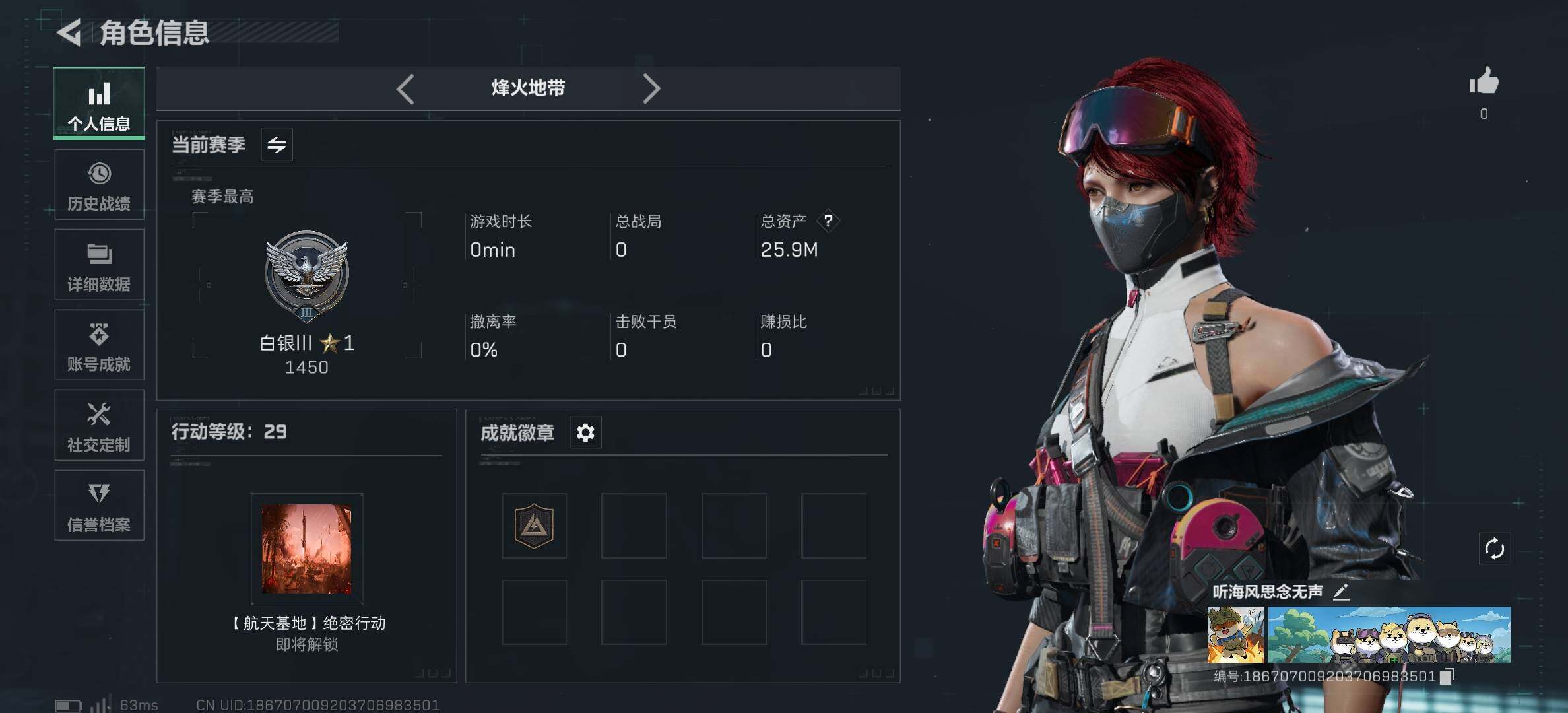- [11603946]可二次 可修改实名 实名:可修改 烽火地带段位:白银 全面战场段位:尉官 高级安全箱(2×3)9.15号到期 总资产:78.2 哈夫币:65.277 传说武器皮肤:复合弓-黑-天际线 史诗武器皮肤:SV-98狙击步枪-林中猎手,SV-98狙击步枪-囚徒 干员外观:红狼-蚀金玫瑰,露娜-黑·天际线