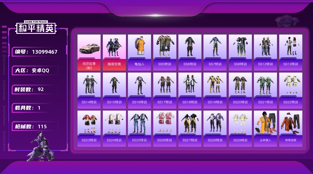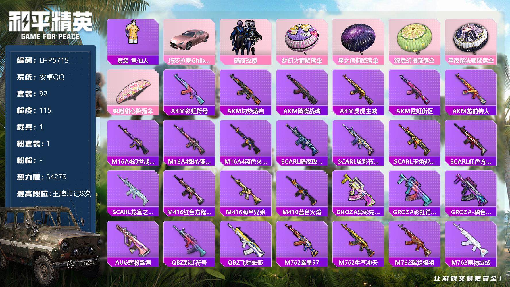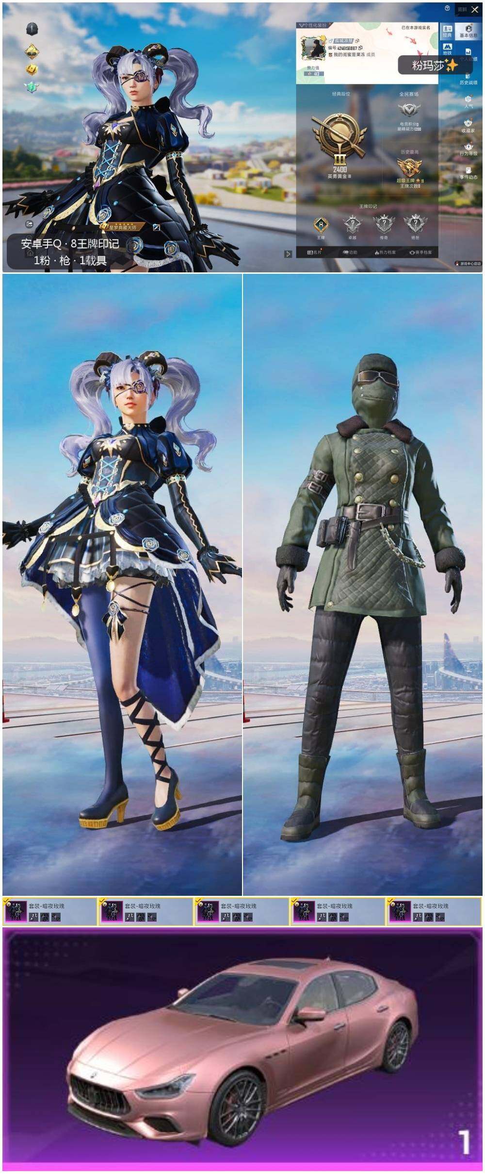 [13099467]安卓 手Q-1粉装-1载具-3.4w热力值-8王牌印记-92套装-115枪皮【热门品类】:套装-龟仙人【粉色载具】:玛莎拉蒂Ghibli(粉)【粉色套装】:粉装-暗夜玫瑰