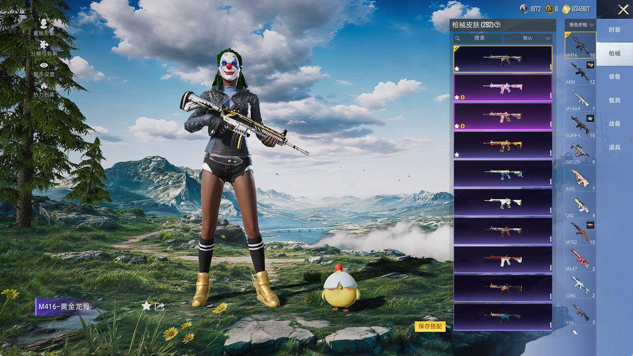 M416-心之恋语,M416-电玩时刻,GROZA-镜光银凌,AUG-暖羊咩咩,UMP45-量子极限,Kar98K-巳巳如意