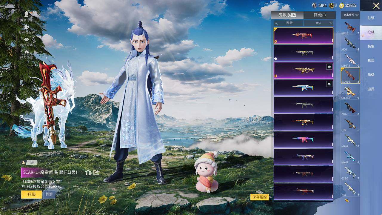 AKM-梦之光华,AKM-幽焰骑士,SCAR-L-金蛇镇世,M416-风花雪月,GROZA-精灵之光,Vector-环太平洋,Kar98K-巳巳如意,MK12-雪月幻音,DP-28-千金淑猫
