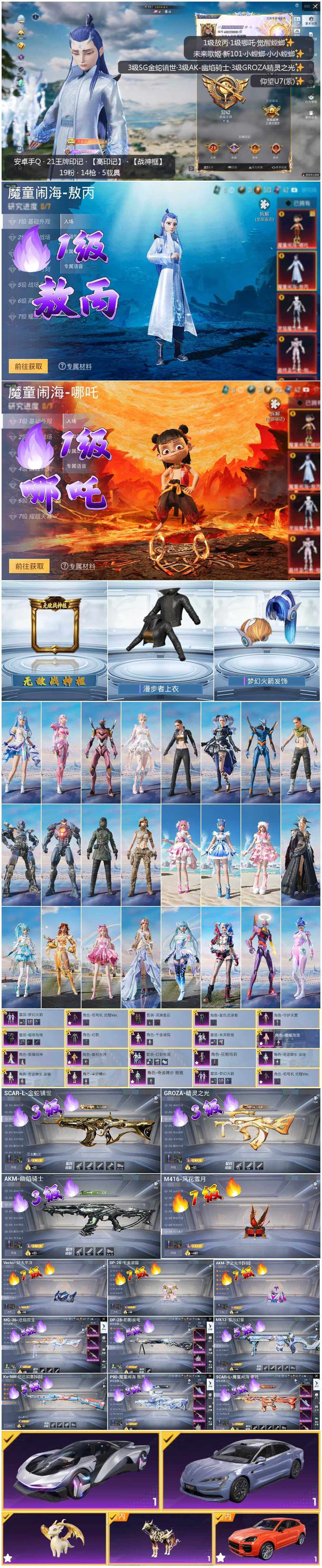 - [12089052]7粉装 4特效枪 1载具 3印记 可二次 可修改实名 身法装备:初号机 觉醒Ver.(新紫螳螂) 优质装备:玛莎拉蒂Ghibli(粉),蝶舞迷情,花间之火,UMP45恐龙拽拽,AKM绿萝繁花,七级UMP45-恐龙拽拽,M416电玩时刻,樱桃泡泡,Kar98K-巳巳如意 热门装扮:飓风飞鹰,呆萌星弥,小可学妹,初号机 觉醒Ver.(新紫螳螂),恒星战甲,万圣娃娃,梦魇先生,东方飞龙,银碳小老虎 五级特效枪:五级M416-电玩时刻,五级AKM-绿萝繁花 二级特效枪:二级Kar98K-巳巳如意 紫色装扮:田园牧歌,轻风白浪,和煦暖阳,莱茵河畔,SS23特训,幻彩翩翩,灵蜜圈圈,妙红点点,香榭午后,活力清阳,SS31特训套装,SS2特训,SS3特训,SS4特训,SS5特训,人气偶像,冰原使者,,冰川特警,决胜时刻,冷焰舞者,凛冬战士,刚毅裁决者,北国孤狼,午夜朋克,极速光影,SS33特训套装,青涩时光,乐音,SS15特训,迪迦奥特曼,SS16特训,冰爽风暴,SS13特训,SS14特训,诡面顽熊,萌趣颜团子,特种颜团子,SS19特训,豚鼠丹丹,吉莉礼服,雪兔飞飞,瑞龙福将,团圆交子,SS17特训,SS18特训,阳光火鸡,都市魅力,酒红色名流,野性战魂,长空猛禽,雪山征服者,雪山精英,雷霆特警,霓虹街区,风暴特警,缤纷果语,荣耀,蓝彩潮人,蓝色运动,虎虎生威吉莉,街头潮人,魅力单车,鹤鸣,黄色伏地魔,黄色格斗者,黎明保卫者,黑色伏地魔,龙的传人,龟仙人,龙魂突击队,熔岩游骑兵连帽夹克,和平特警,沙漠毒蛇,极地朋克,极速红龙,柠萌假日,橘黑制服,沙漠兵团,派对绅士,海滨突袭者,涂山之恋,深蓝色名流,滨海假日,幻影武者,圣诞大吉,坚韧舞者,夜莺强袭者,完美偶像,帅气教官,战地督导,战地菁英,湖蓝色名流,滨海厨神,绮丽涂鸦,甜蜜菠萝,疯狂小兔子,白色伏地魔,破晓战魂,破蛋小黄鸡,神秘领域,甜蜜告白,福星高照,空岛之星,空投萌叽,竞技勇士朋克,竞技达人朋克,红色运动,王牌教练,灰色格斗者,灼焰舞者,热血青春,燃烧卡路里,猛禽,短笛,异域银装,鱼渊荷华,燕燕于飞,竞技名士,银尘,惊鸿侠骨,究极悟饭,神气柴柴,懵萌河马,SS24特训(SS24特训套装),SS25特训,锦衣飞扬,SS27特训,小丑鱼,晨曦薄雾,春光漫游,快闪甜心,SS6特训,SS7特训,黑夜传说,玲珑飞花,大橘大利,小