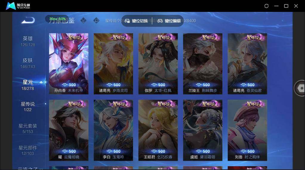 - PX_2046446-7 安卓QQ/ 242皮肤/ 120英雄 v8 【3 典藏皮肤】鸣剑·曳影 李白,全息碎影 孙悟空,九霄神辉 花木兰, 【17 传说皮肤】启明星使 虞姬,云霓雀翎 虞姬,云鹰飞将 曜,齐天大圣 孙悟空,浮生妄 夏洛特,地狱之眼 宫本武藏,默契交锋 兰陵王,音你心动 周瑜,炽阳神光 镜,黄金射手座 后羿,乞巧织情 王昭君,时之恋人 刘备,山海·炽霜斩 李信,一念神魔 李信,淬星