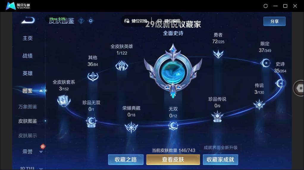 - [13866210]安卓Q-V8-最强王者段位-125英雄-301皮肤-1典藏-0珍品无双-0无双-0珍品传说-11传说-85史诗 【荣耀典藏】:诸葛亮星域神启 【传说皮肤】:女娲愿照千秋盛,桑启鸣野蒿,孙悟空齐天大圣,不知火舞绯月行,马超无双飞将,虞姬启明星使,伽罗太华,李白凤求凰,孙尚香末日机甲,宫本武藏地狱之眼,孙悟空地狱火 【限定皮肤】:白起狰,大乔绒语心约,姜子牙天穹之誓,狄仁杰阴阳师,虞姬凯尔特女王,赵云皇家上将,墨子神迹守卫,孙尚香蔷薇恋人,鲁班七号狮舞东方,高渐离死亡摇滚,阿轲迷踪丽影,扁鹊奇幻香踪,芈月重明,周瑜赤莲之焰,夏侯惇朔风刀,曹操烛龙,典韦穷奇,典韦岱宗,马可波罗暗影游猎,马可波罗山海玄木吟,狄仁杰魔术师,狄仁杰万华元夜,达摩星际陆战队,项羽海滩派对,老夫子醍醐杖,老夫子航海奇遇记,关羽冰锋战神,程咬金演武夺筹,刘邦夺宝奇兵,韩信飞衡,王昭君凤凰于飞,兰陵王驯魔猎人,花木兰瑞麟志,不知火舞绯月行,亚瑟潮玩骑士王,孙悟空美猴王,孙悟空至尊宝,孙悟空齐天大圣,牛魔御旌,后羿辉光之辰,李元芳银河之约,李元芳云中旅人,虞姬启明星使,钟馗神迹守卫,钟馗驱傩正仪,杨戬潮玩骑兵,干将莫邪冰霜恋舞曲,雅典娜黎明之约,蔡文姬繁星吟游,太乙真人华丽摇滚,鬼谷子原初探秘者,鬼谷子五谷丰年,百里玄策原初追逐者,弈星混沌棋,梦奇顽趣,沈梦溪星空之诺,明世隐疑决卦,裴擒虎李小龙,裴擒虎擒涛扼浪,狂铁御狮,米莱狄御霄,米莱狄胡桃异想国,云中君纤云弄巧,伽罗太华,盾山御銮,猪八戒西部大镖客,上官婉儿梁祝,嫦娥暖冬兔眠,西施玲珑珍味,鲁班大师探海日志,桑启海盐诗旅,暃星界游侠,戈娅驭风魔法,张良古海寻踪,蒙犽百解令,蒙恬荣光圣徽,鬼谷子天穹祈灯,刘邦剑破天穹,程咬金群星魔术团,刘备异域游侠,周瑜熔金海岸 【年限皮肤】:花木兰瑞麟志,孙悟空美猴王,王昭君凤凰于飞,李白凤求凰,后羿辉光之辰,伽罗太华,韩信飞衡,典韦岱宗,马可波罗山海玄木吟 【赛季限定】:白起狰,芈月重明,夏侯惇朔风刀,曹操烛龙,典韦穷奇,狄仁杰万华元夜,老夫子醍醐杖,程咬金演武夺筹,张良古海寻踪,牛魔御旌,李元芳云中旅人,虞姬凯尔特女王,钟馗驱傩正仪,雅典娜黎明之约,鬼谷子原初探秘者,百里玄策原初追逐者,弈星混沌棋,梦奇顽趣,明世隐疑决卦,裴擒虎擒涛扼浪,狂铁御狮,米莱狄御霄,盾山御銮,鲁班大师探海日志,桑启海盐诗旅,鬼谷子天