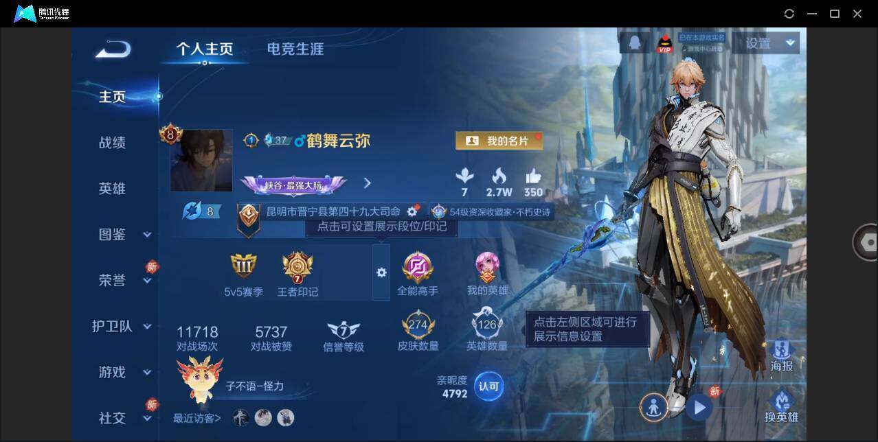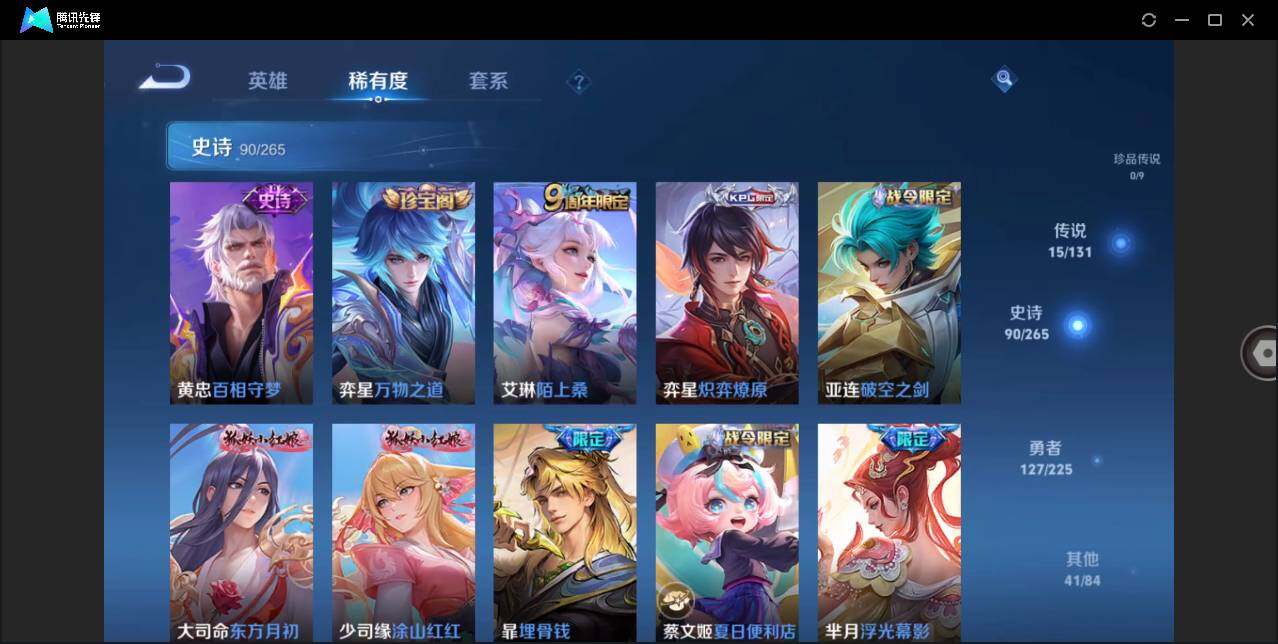[13099521]安卓Q-V8-至尊星耀III段位-126英雄-274皮肤-1典藏-15传说-90史诗
