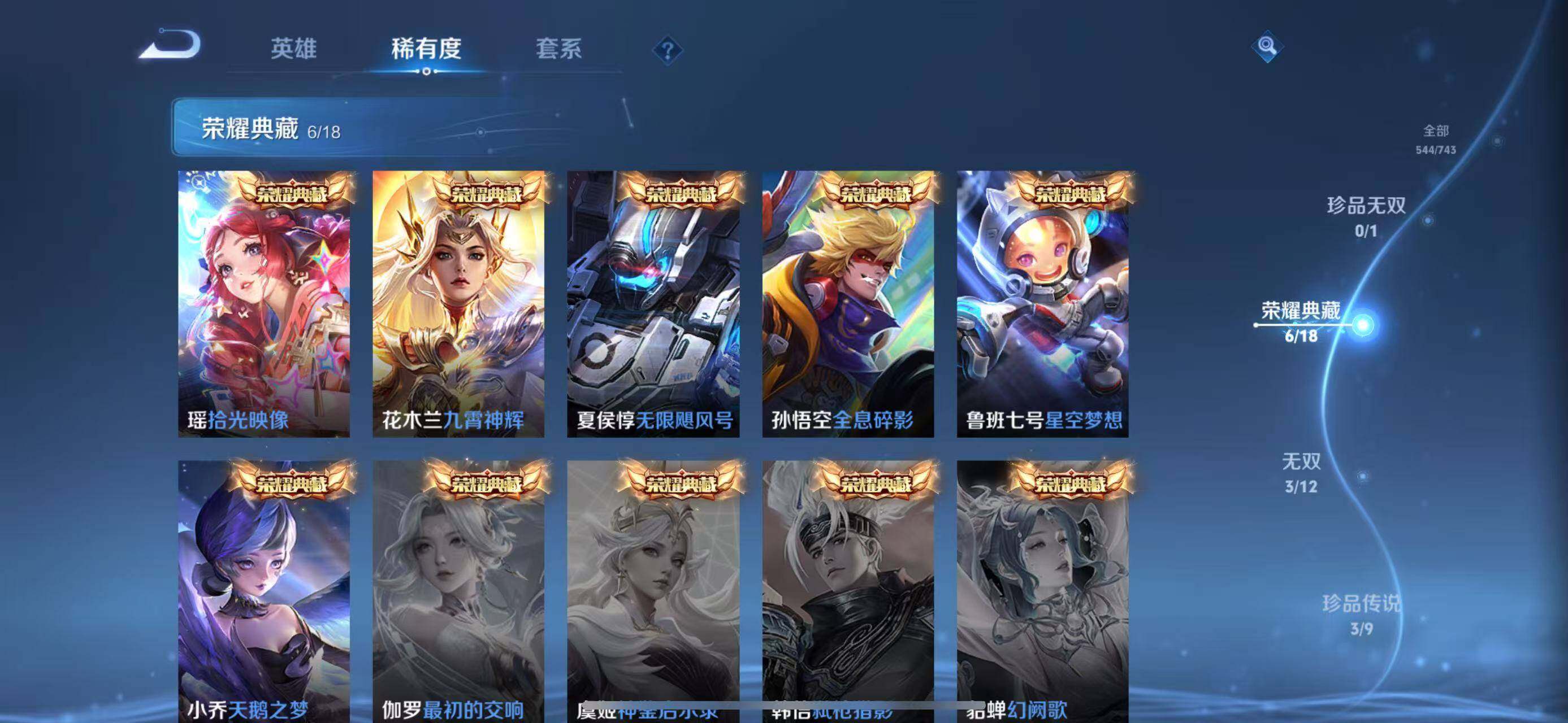 【荣耀典藏】:武则天英雄,孙悟空全息碎影,夏侯惇无限飓风号,小乔天鹅之梦,鲁班七号星空梦想,花木兰九霄神辉,瑶拾光映像