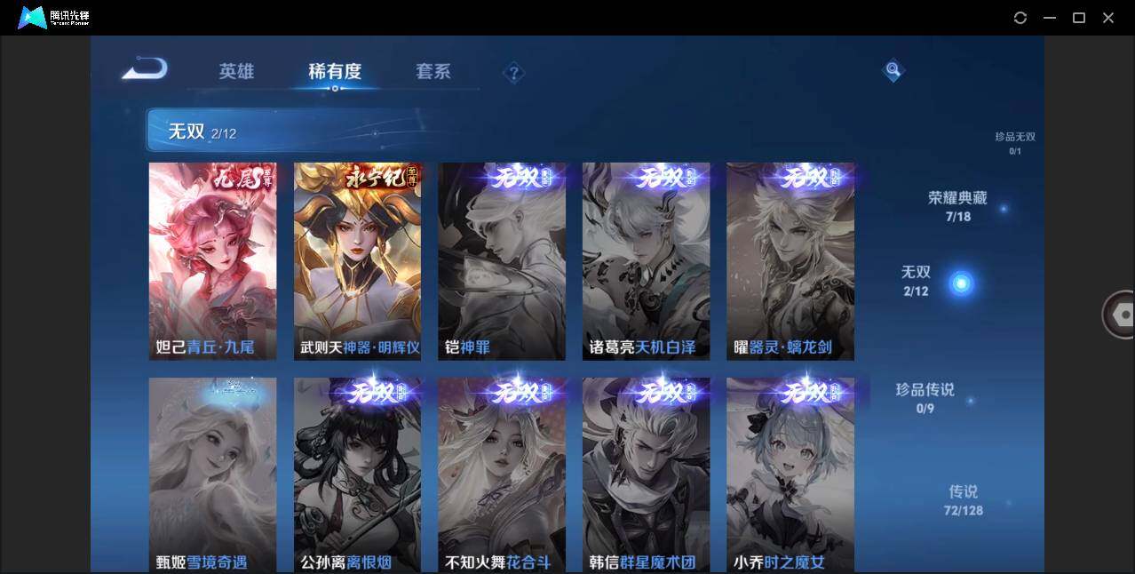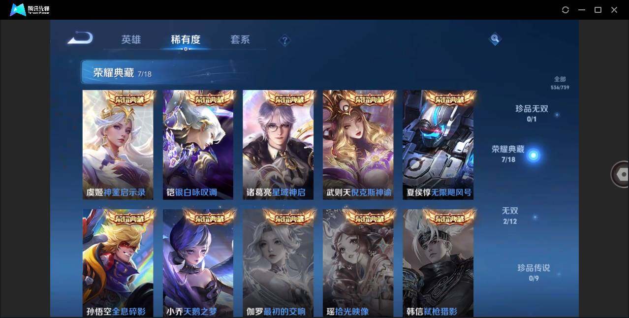 【荣耀典藏】:武则天英雄,孙悟空全息碎影,武则天倪克斯神谕,夏侯惇无限飓风号,小乔天鹅之梦,诸葛亮星域神启,铠银白咏叹调,虞姬神鉴启示录