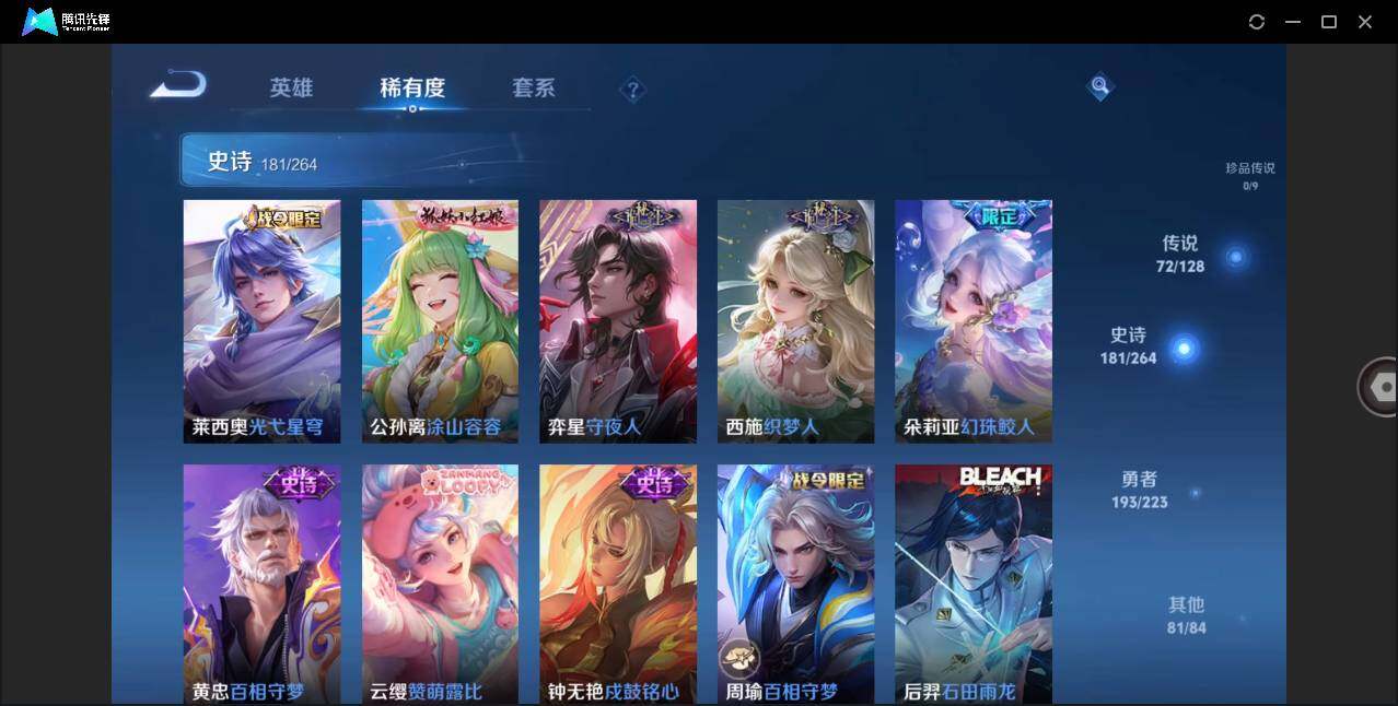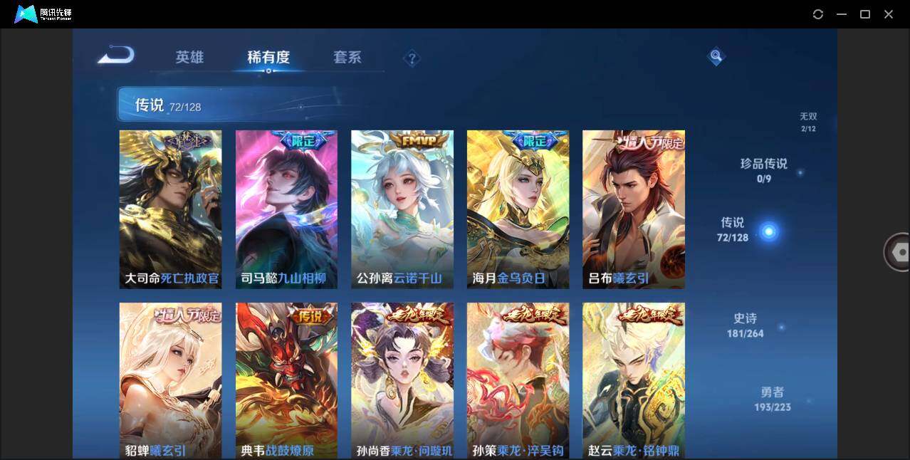 - [12285047]V9 1典藏 1珍品传说 33传说 125英雄 320皮肤 可修改实名 百里守约小国标 优质装备:神鉴启示录,怪盗基德,黄金狮子座,黄金射手座,冠军飞将,云鹰飞将(小将军),猫影幻舞,久胜战神,炽阳神光,一念神魔,云霓雀翎,末日机甲-孙尚香(绿蚂蚱),地狱火,仲夏夜之梦(大飞蛾),地狱之眼,超时空战士-狄仁杰,挚爱之约,无双飞将,碎云,浮生妄,记忆之芯(机甲兔),澜逐花归海 传说皮:祥瑞亨通 珍宝阁皮:优雅恋人,蔷薇恋人 限定皮:鸣野蒿,至尊宝,白虎志(电光耗子),凤求凰(白切鸡),太华(伽罗年限),梅西,武陵仙君(小桃花),神威(电光马子),飞衡(韩信年限),玄嵩(庄周年限),诗剑行,齐天大圣,怒海麟威,五谷丰年,青龙志(铠年限),武圣,天狼运算者,游园惊梦,梁祝,御风骁将(吕布年限),天狼狩猎者,龙胆,逐梦之翼,烈魂,岱宗(典韦年限),虎魄,天狼绘梦者,李小龙,逐梦之影,逐梦之光,朱雀志(守约年限),永曜之星,如梦令-后羿,一生所爱,大圣娶亲,寅虎·心曲(虎婆),寅虎·赤拳(老虎年限),山海·玄木吟(马可年限) 史诗皮:狼魂孤将,雪豹·霜爪,石田雨龙,百相守梦-百里守约,撼地雄心,破空之剑,怒海争锋,海诺心动手记,星界战将,紫霞仙子,电玩小子(小书包),白龙吟,黄金分割率,特工魅影,千年之狐,白蛇,真我赫兹(百里守约),末日机甲-莱西奥,江河有灵,蒙恬荣光圣徽,魅语,无限星赏官,冰冠公主,偶像歌手,暗夜猫娘,末日机甲-吕布,修罗,摇滚巨星,水果甜心,绅士熊喵,星夜王子,德古拉伯爵,暗隐猎兽者,幽灵船长,鬼剑武藏,舞动绿茵,地狱岩魂,纤云弄巧,繁星吟游(呼啦呼啦),缤纷独角兽,乘风破浪,逐浪之夏,水晶猎龙者,曙光守护者,箭羽风息,金属风暴,原初追逐者,圣诞狂欢,圣诞恋歌,鹰眼统帅,王者之锤,魅力维加斯,黎明之约,滕王阁序,无心