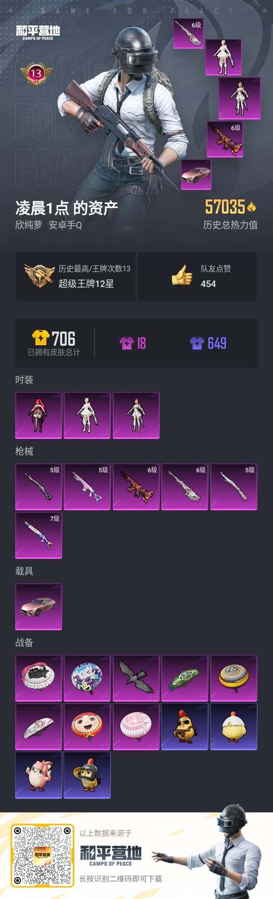 - PX_2113311- 安卓手Q-0王牌印记-2粉装-2特效枪-2载具-20070热力值-37套装-65枪皮-0卓越印记-0传奇印记 【2粉装】,放客神游,心之恋语 【2特效枪】AKM-炫紫旋律-4级 M416-心之恋语-4级 【1稀有紫装】,浪漫波比, 【2稀有载具】,特斯拉Model 3(珍珠白),阿斯顿·马丁DBX(橙), 【37稀有时装】,浪漫波比,大橘为重,迷域探索者,机械英豪,机械征