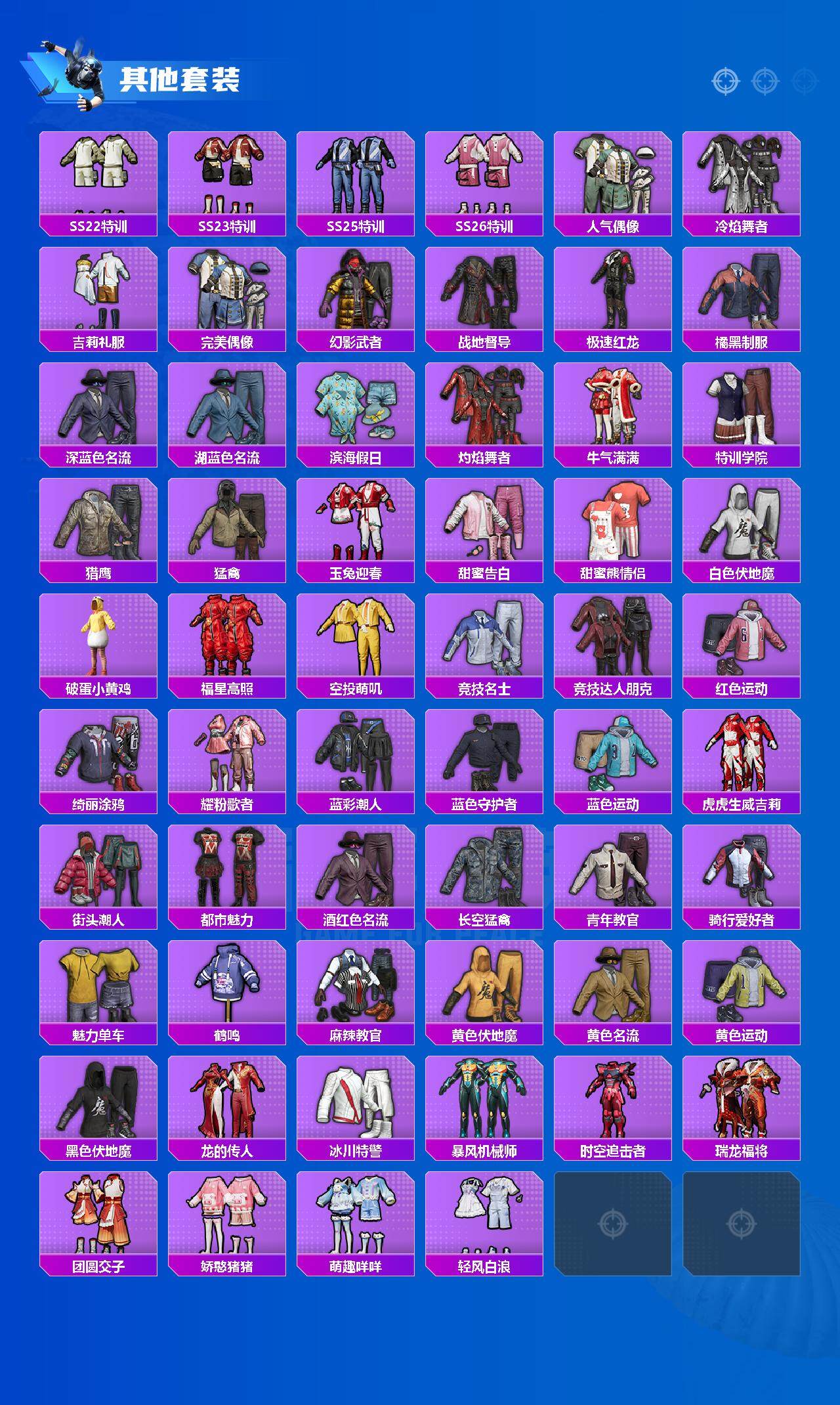 【其他套装】:套装-SS16特训,套装-SS17特训,套装-SS18特训,套装-SS19特训,套装-SS20特训,套装-SS21特训,套装-SS22特训,套装-SS23特训,套装-SS25特训,套装-SS26特训,套装-人气偶像,套装-冷焰舞者,套装-吉莉礼服,套装-完美偶像,套装-幻影武者,套装-战地督导,套装-极速红龙