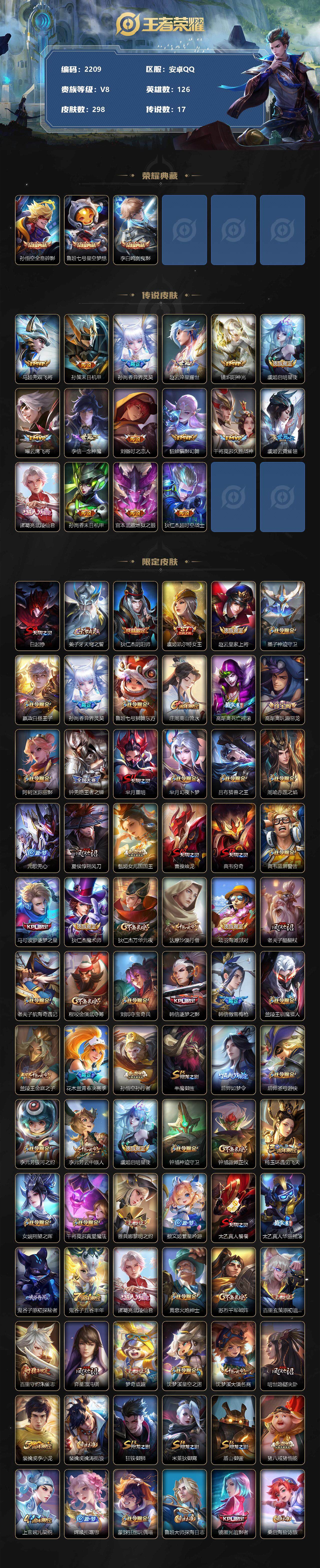 [13107553]安卓Q-V8-最强王者段位-126英雄-298皮肤-3典藏-0珍品无双-0无双-0珍品传说-17传说-86史诗