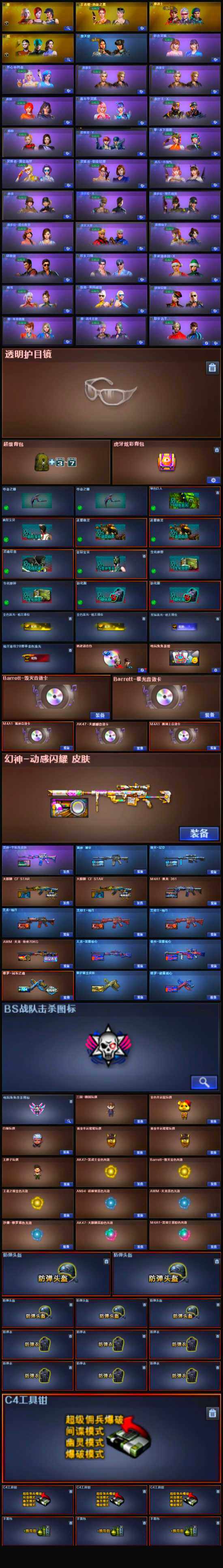 【音效卡】:AK47-火麒麟音效卡,M4A1-雷神音效卡,M4A1-黑骑士音效卡,Barrett-毁灭音效卡,Barrett-极光音效卡,绝迹语音包,炼狱-百战金芒-庆典舞曲音效卡