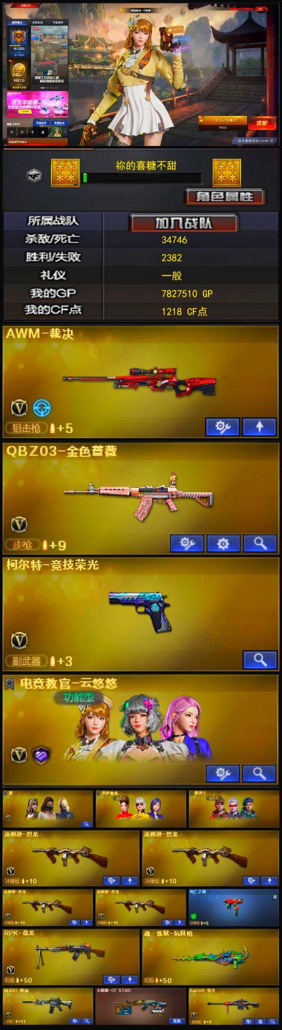 - [13075339]【411】62V/100级/元帅/10王者/3炫金/2英雄/QBZ03-金色蔷薇/C.A.T/M4A1-黑骑士/汤姆逊-烈龙/加特林-炼狱/USP雷暴/沙鹰-修罗/王者之光/王者之怒/炼狱-悦蓝/王者之魂/炫金毁灭/炫金雷神/炫金黑武士/AK47-火麒麟音效卡/M4A1-雷神音效卡/M4A1-黑龙音效卡/M4A1-黑骑士音效卡/Barrett-毁灭音效卡/炼狱-百战金芒-庆典舞曲音效卡/烈龙-星空/雷神-能量核心/雷神荣耀之魄/雷神-星空/M4A1-再燃火线/火麒麟-白虎/火麒麟-心动糖果/毁灭-星空/毁灭-黑大圣皮肤/M4A1-千变-孔明皮肤/黑龙-能量核心/无影耀金皮肤/AK47-黑武士-361/战神-粉色甜心皮肤/战神-紫绶金章皮肤/战神-流金岁月皮肤/天龙-秘银/极光-能量核心/炼狱-星空/修罗-能量核心/修罗耀金皮肤/轻型军用手斧-再燃火线/擎天-秘银/炫/王者之瞳/零-水下丽影/M4A1-雷神-精英刀锋/AWM-灵狐-15周年嘉年华/M37-葵/COP-旗袍/迷你巨石泰坦-魔花研究所/迷你深渊冰龙/夺魂/迷你牛牛/深渊终结者手雷/闪光弹-小乔/超级对讲机/激光毁灭者/机甲撕裂者/阐释者/AK47-火麒麟/M4A1-黑龙/M4A1-雷神/AK47-无影/M4A1-死神/AK47-黑武士/AK47-黑鲨/王者之影-觉醒版/王者之势-觉醒版/AK47-B-战神/黑骑士-海王/AWM-天龙/Barrett-毁灭/AWM-裁决/王者之怒-觉醒版/王者之力-觉醒版/炼狱-百战金芒/AA-12-雷霆/沙鹰-天神/柯尔特-百战金芒/屠龙/龙啸/擎天/麒麟刺/幻灵之锋/斩神刀-雷暴/麒麟刺-百战金芒/王者之锋-觉醒版/高爆手雷-雷霆/高爆手雷-雷暴/高爆手雷-幻灵/闪光弹-雷霆/闪光弹-雷暴/闪光弹-幻灵/烟雾弹-雷霆/烟雾弹-雷暴/烟雾弹-幻灵
