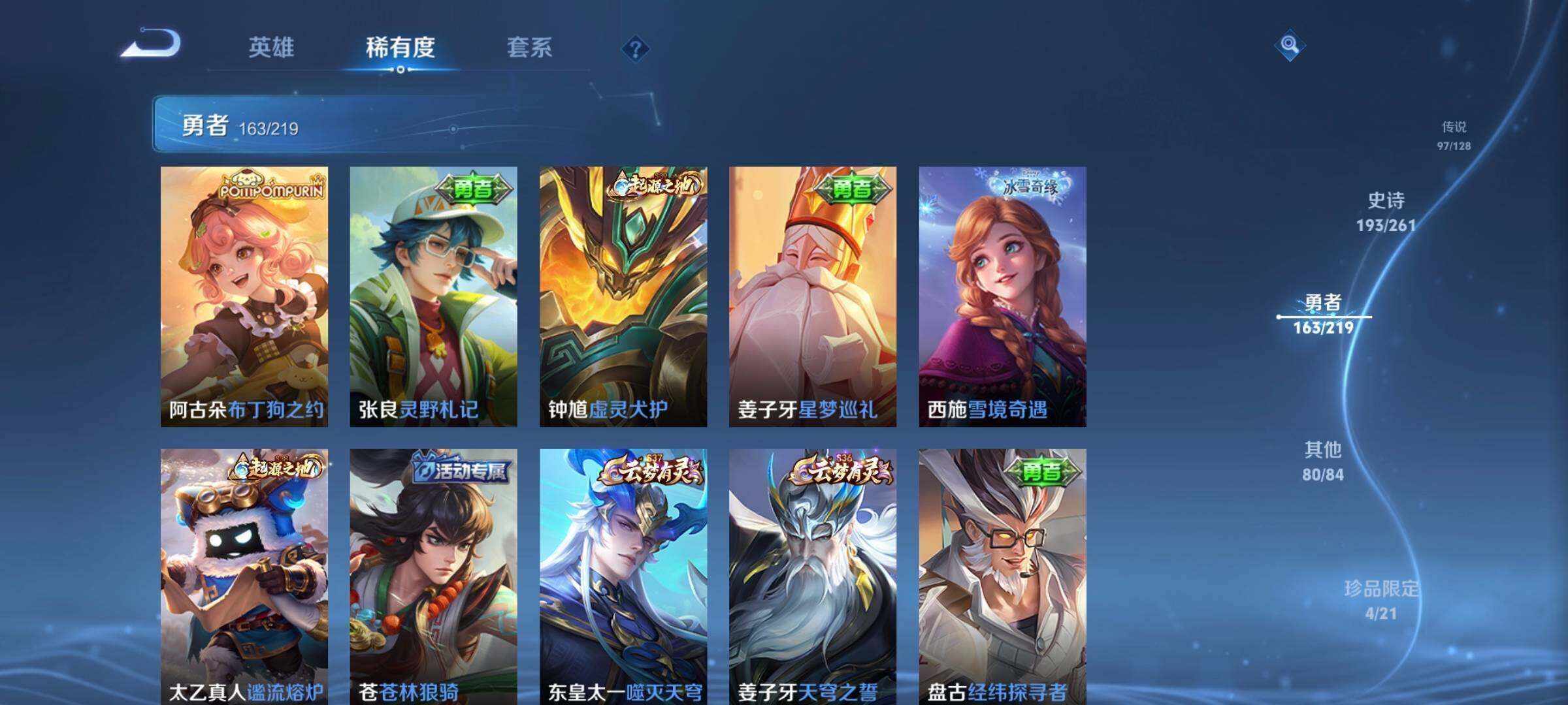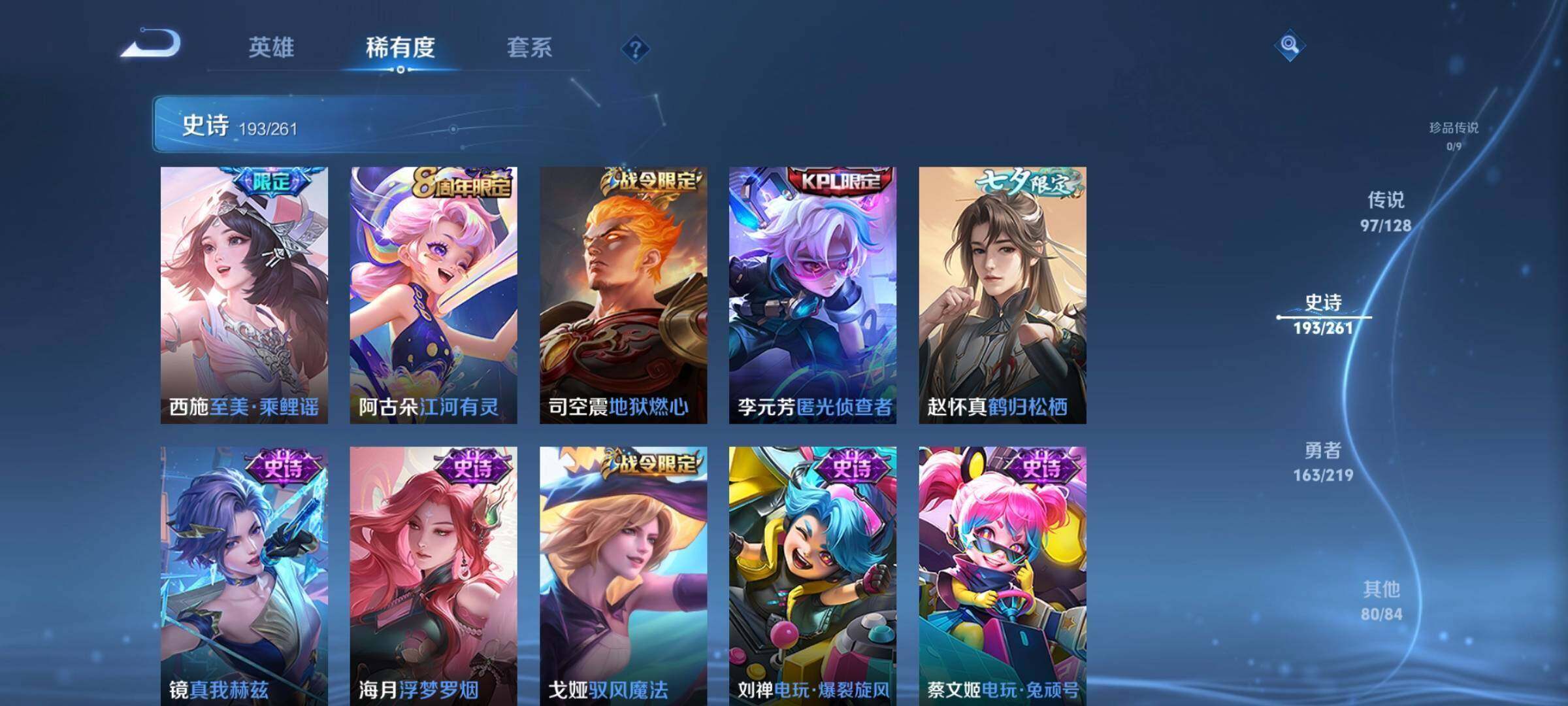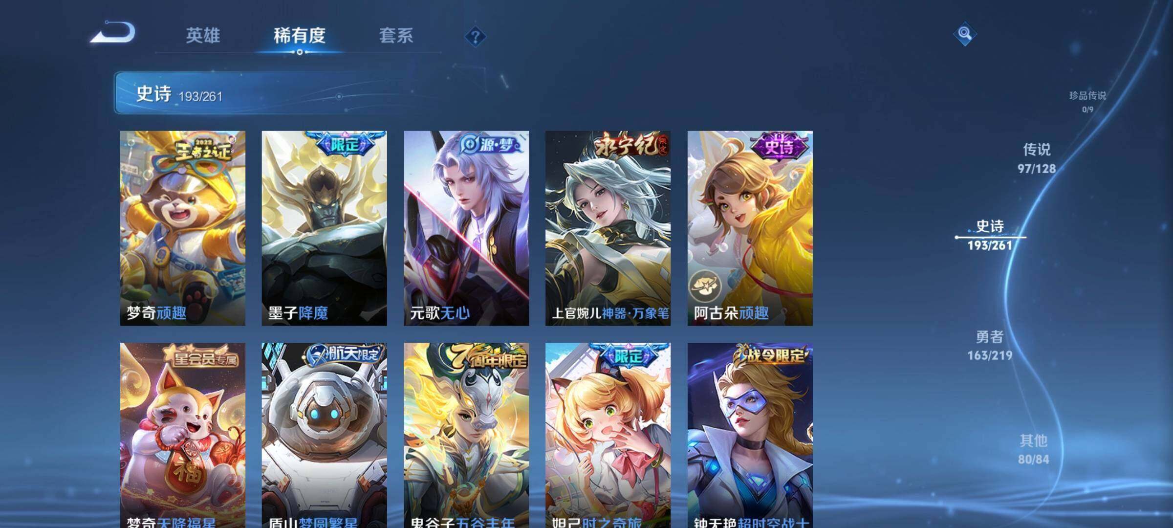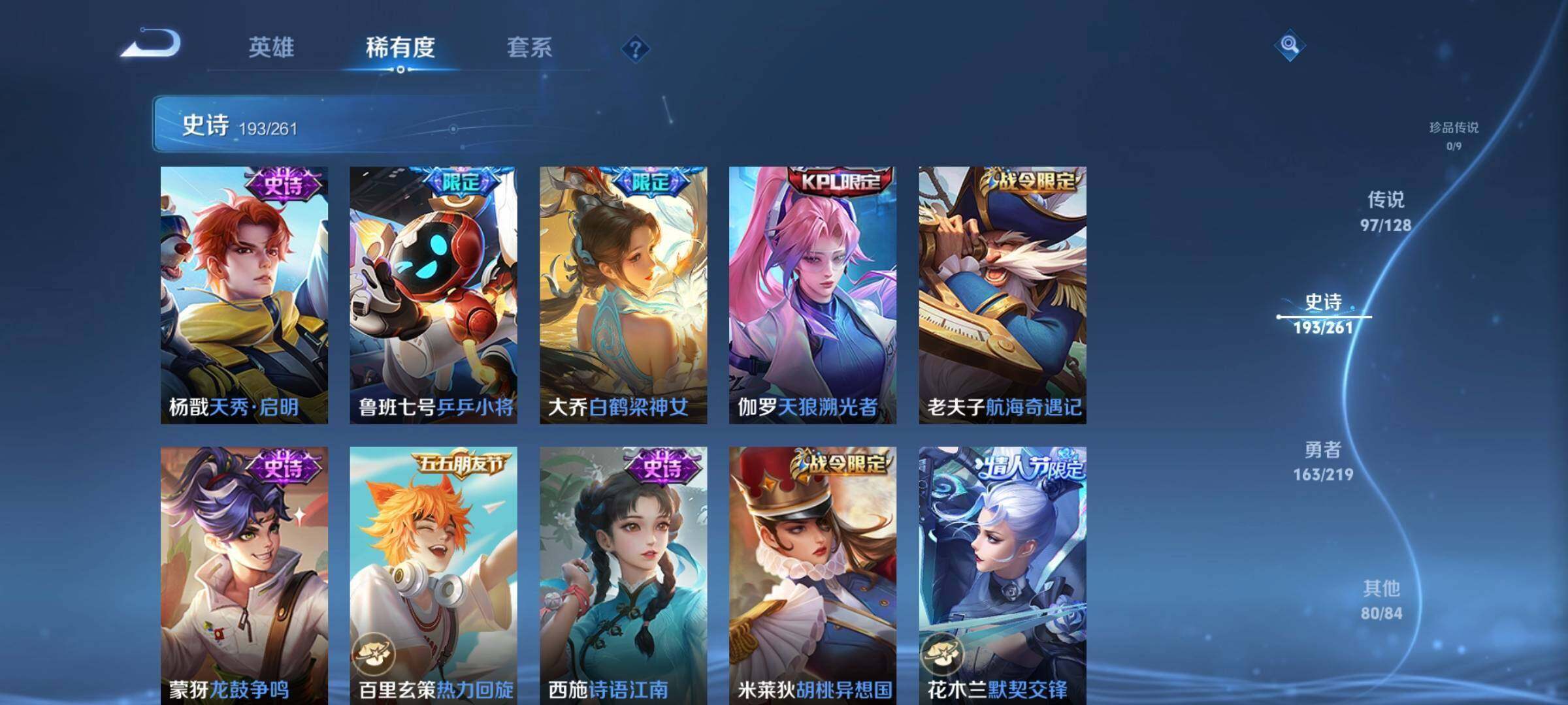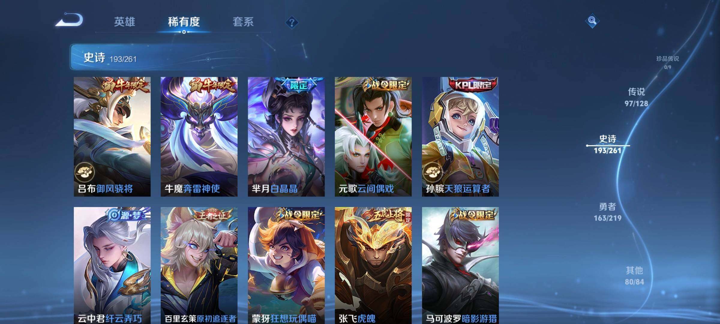 - PX_2090020-贵族8/皮肤260/典藏1/传说13/史诗74/英雄124/瑶拾光映像/真我赫兹瑶/瑶大耳狗之梦/蔷薇恋人/女武神/仲夏夜之梦/猫影幻舞/云鹰飞将/启明星使/游龙清影/遇见胡旋/时之祈愿女/花朝如约/心动手记朵莉亚/桑启鸣野蒿/云缨幻光神枪/蔡文姬愿照福禄聚/西施续相思/蒙犽顽岩魄/蔡文姬夏日便利店/大乔绒语心约/虞姬夏日便利店/姜子牙天穹之誓/狄仁杰阴阳师/赵云皇家上将/蔷