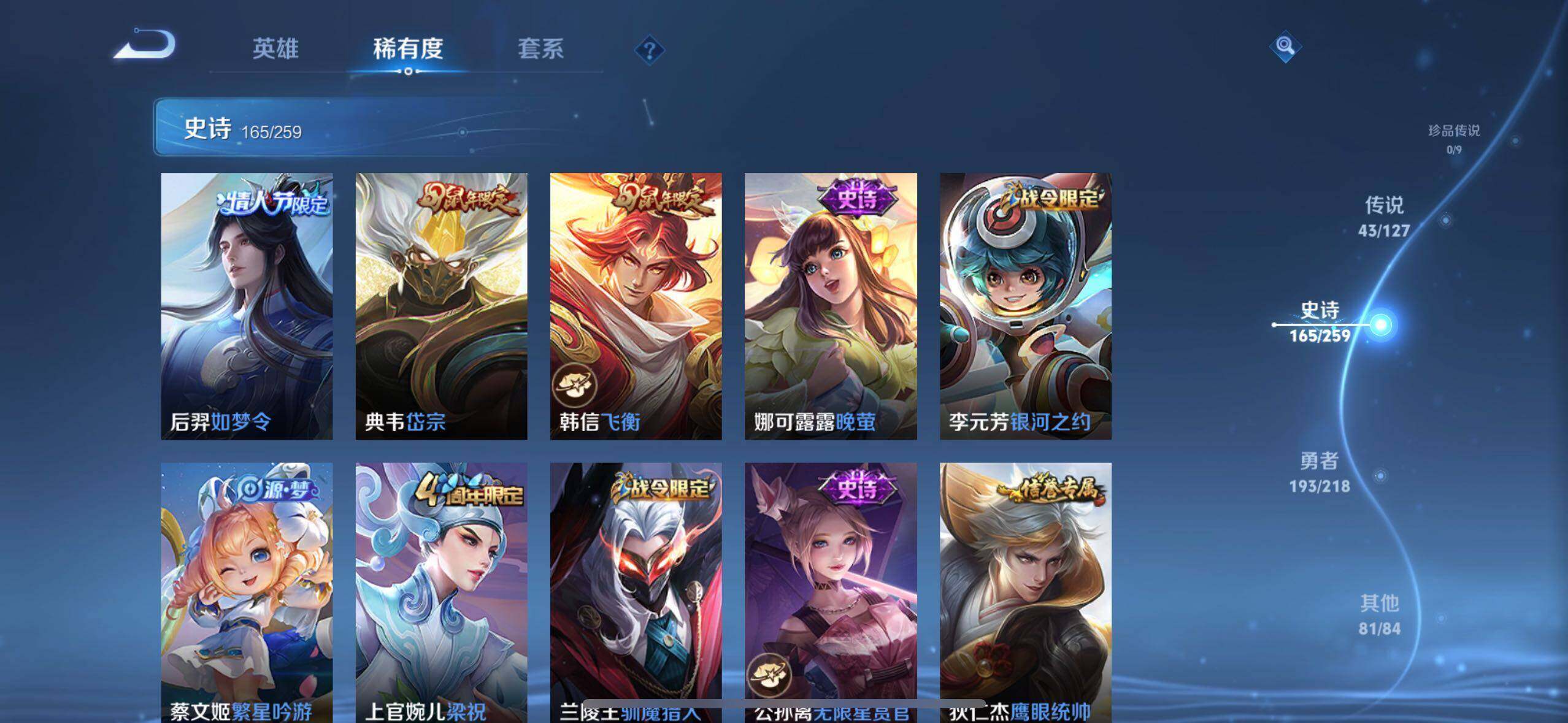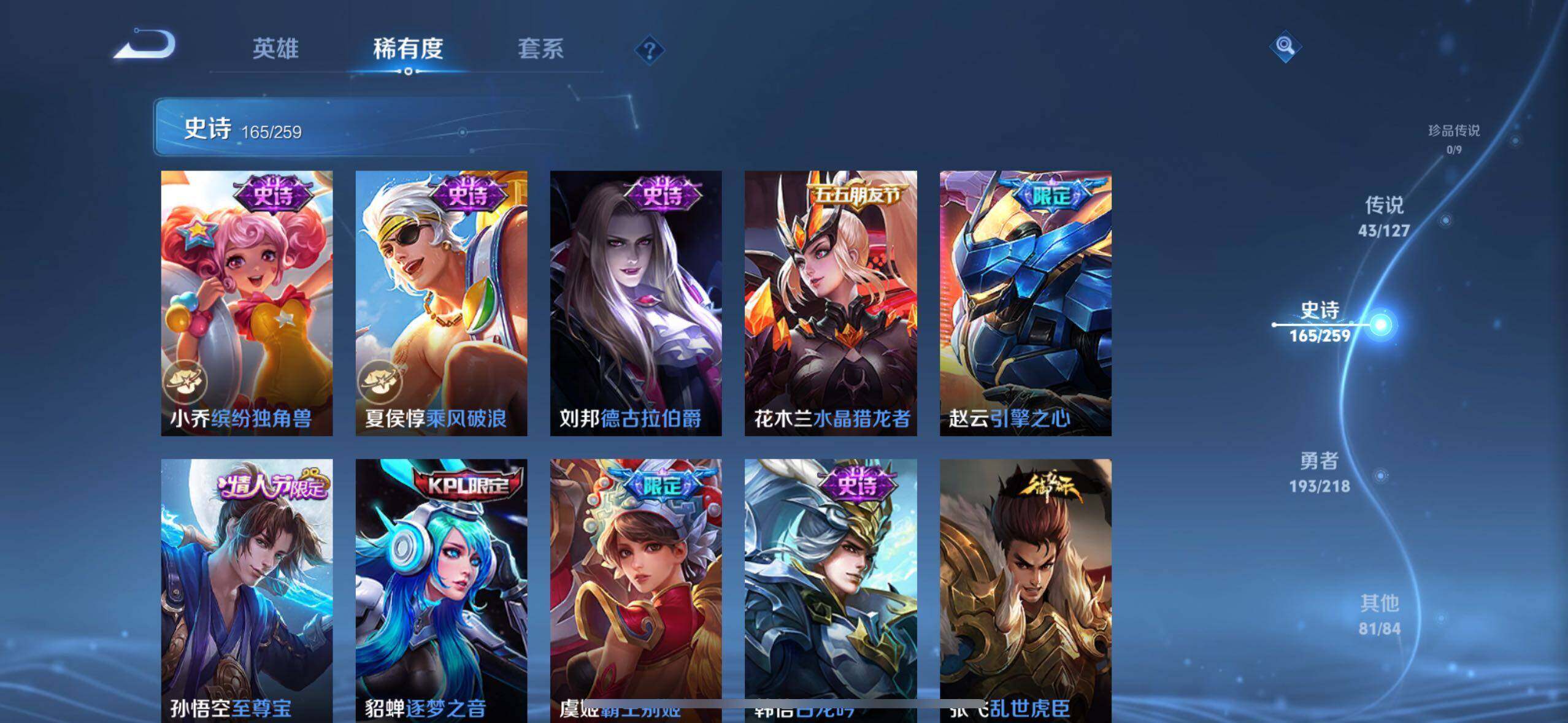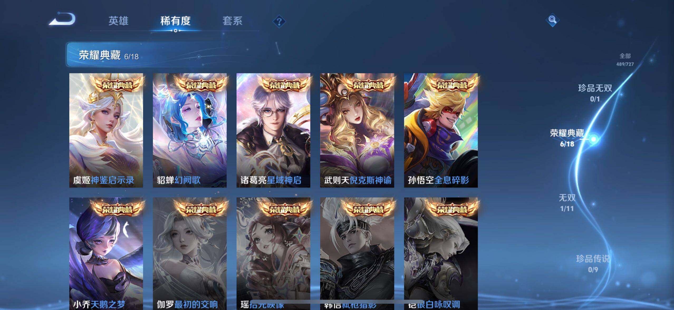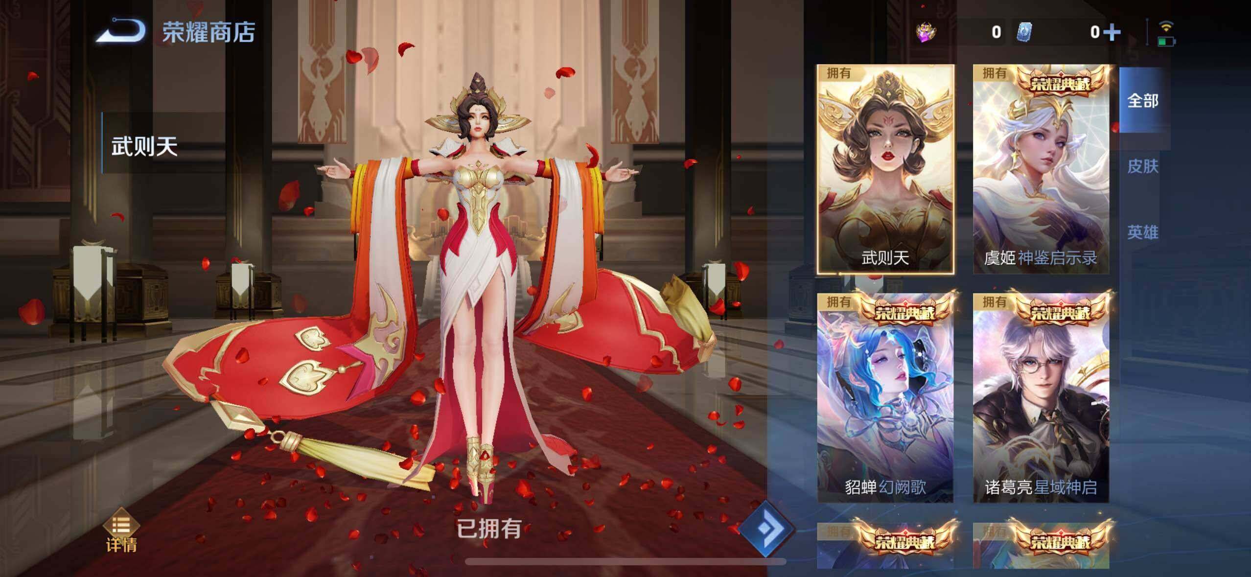 【荣耀典藏】:武则天英雄,孙悟空全息碎影,武则天倪克斯神谕,小乔天鹅之梦,诸葛亮星域神启,貂蝉幻阙歌,虞姬神鉴启示录