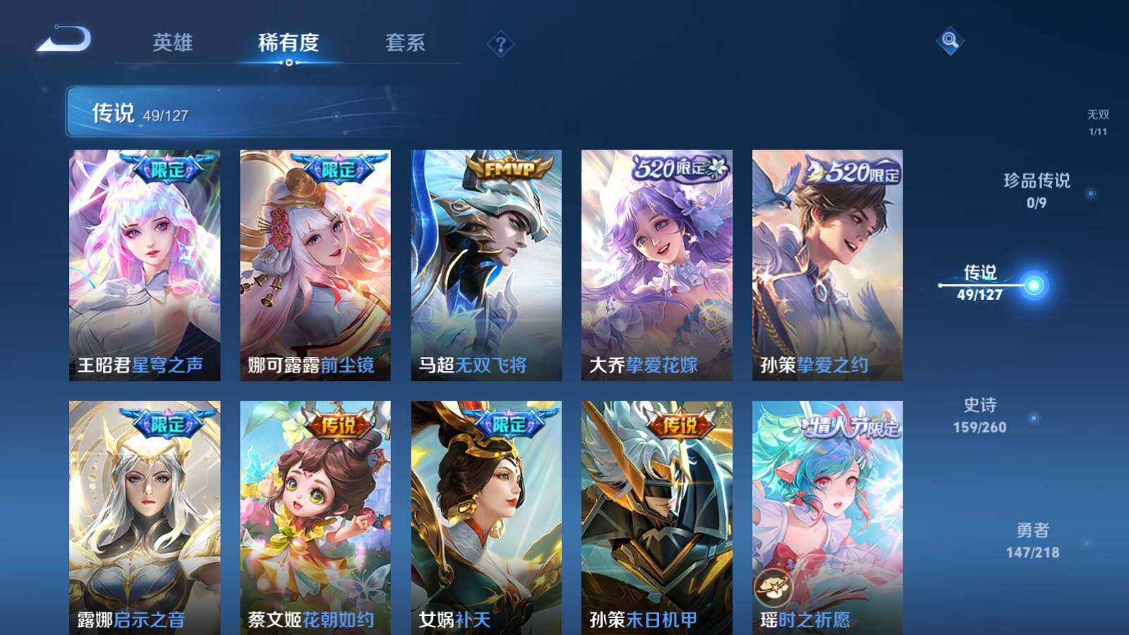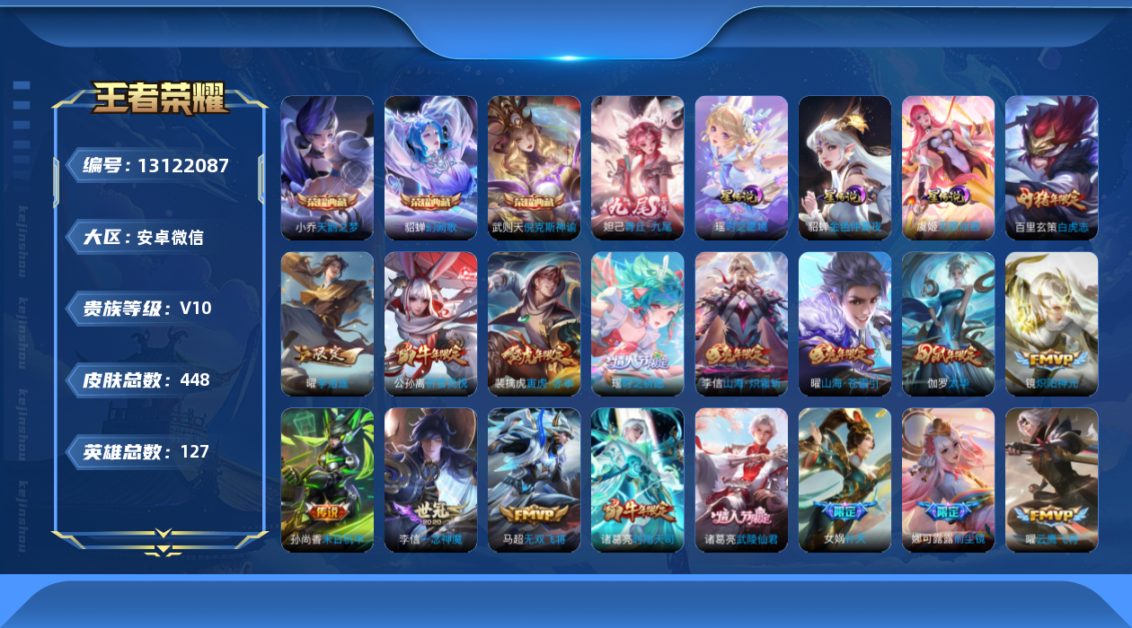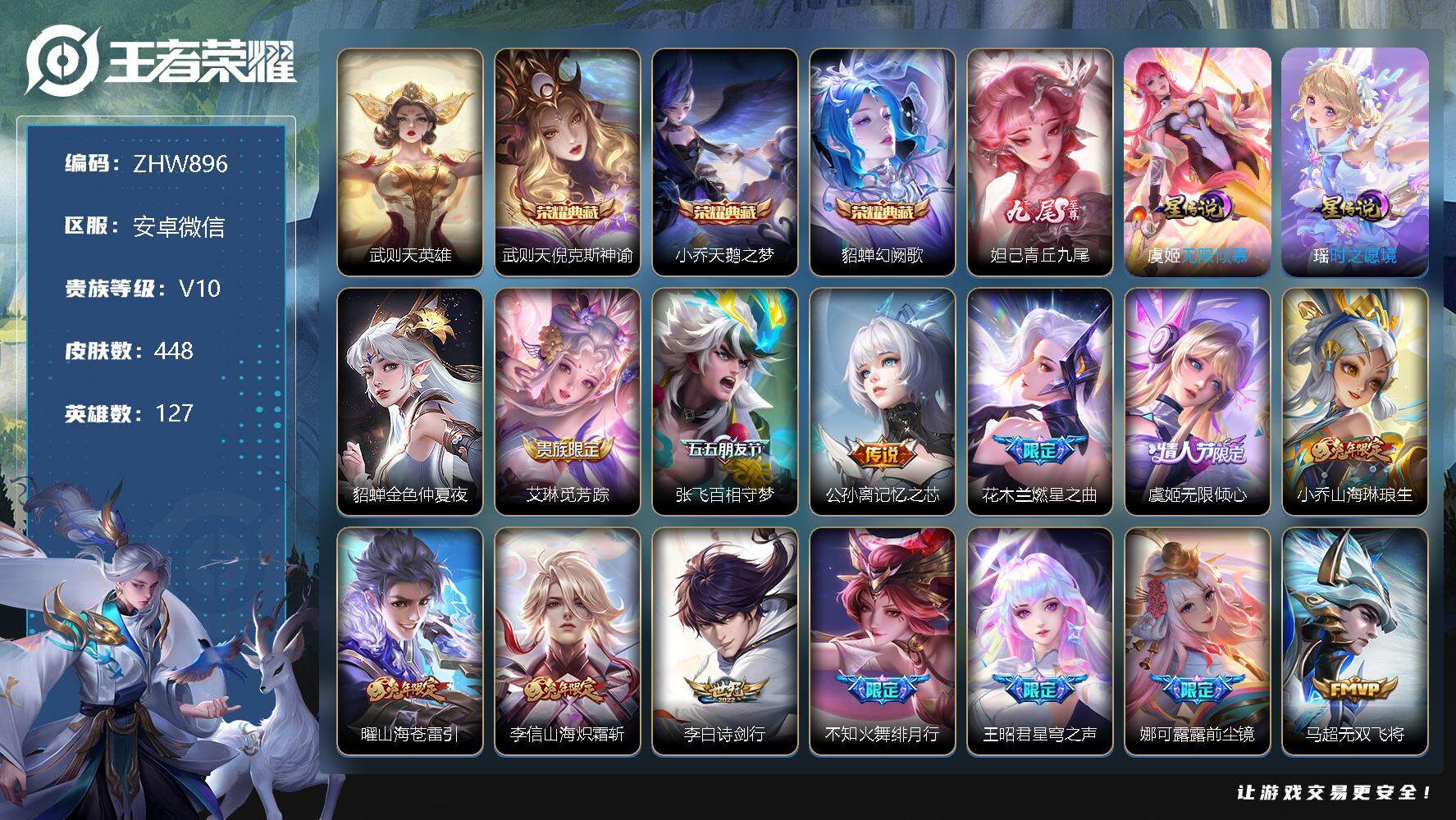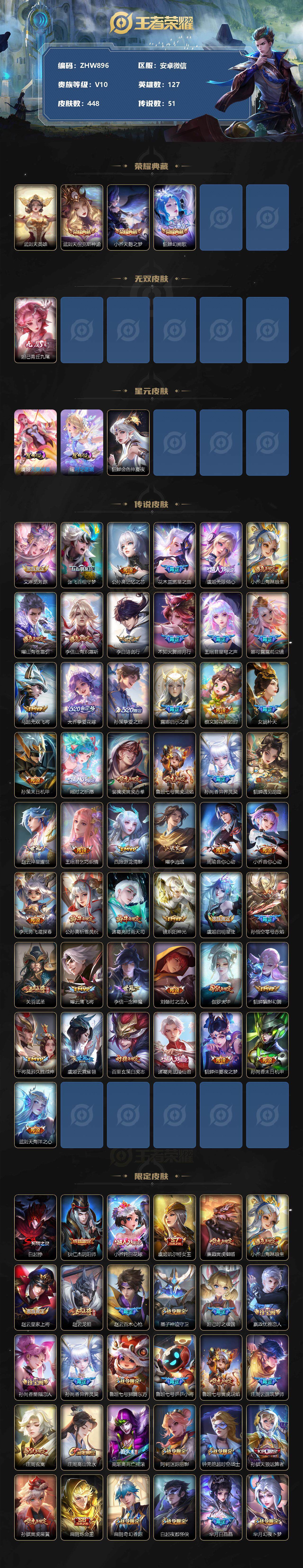 [13122087]安卓WX-V10-127英雄-448皮肤-3典藏-0珍品无双-1无双-0珍品传说-51传说-161史诗-3星元