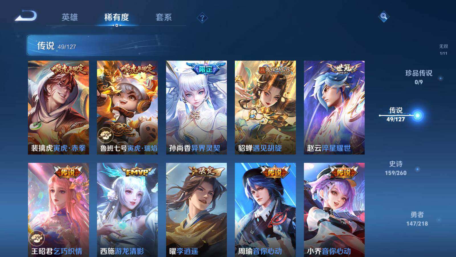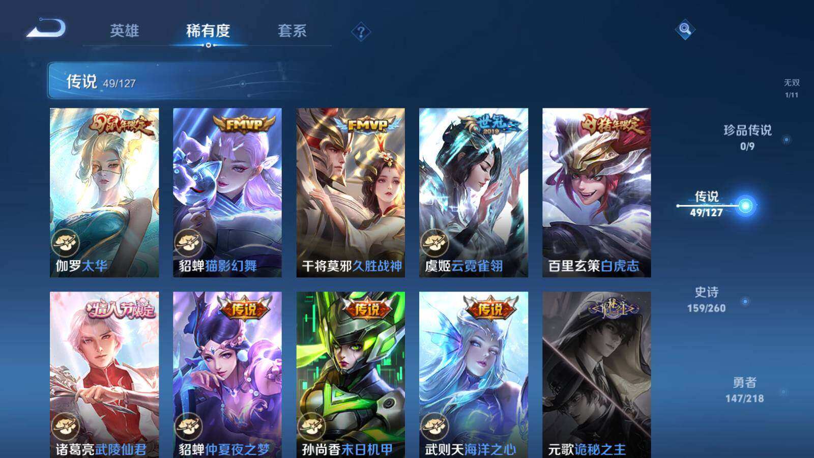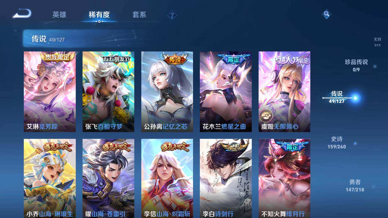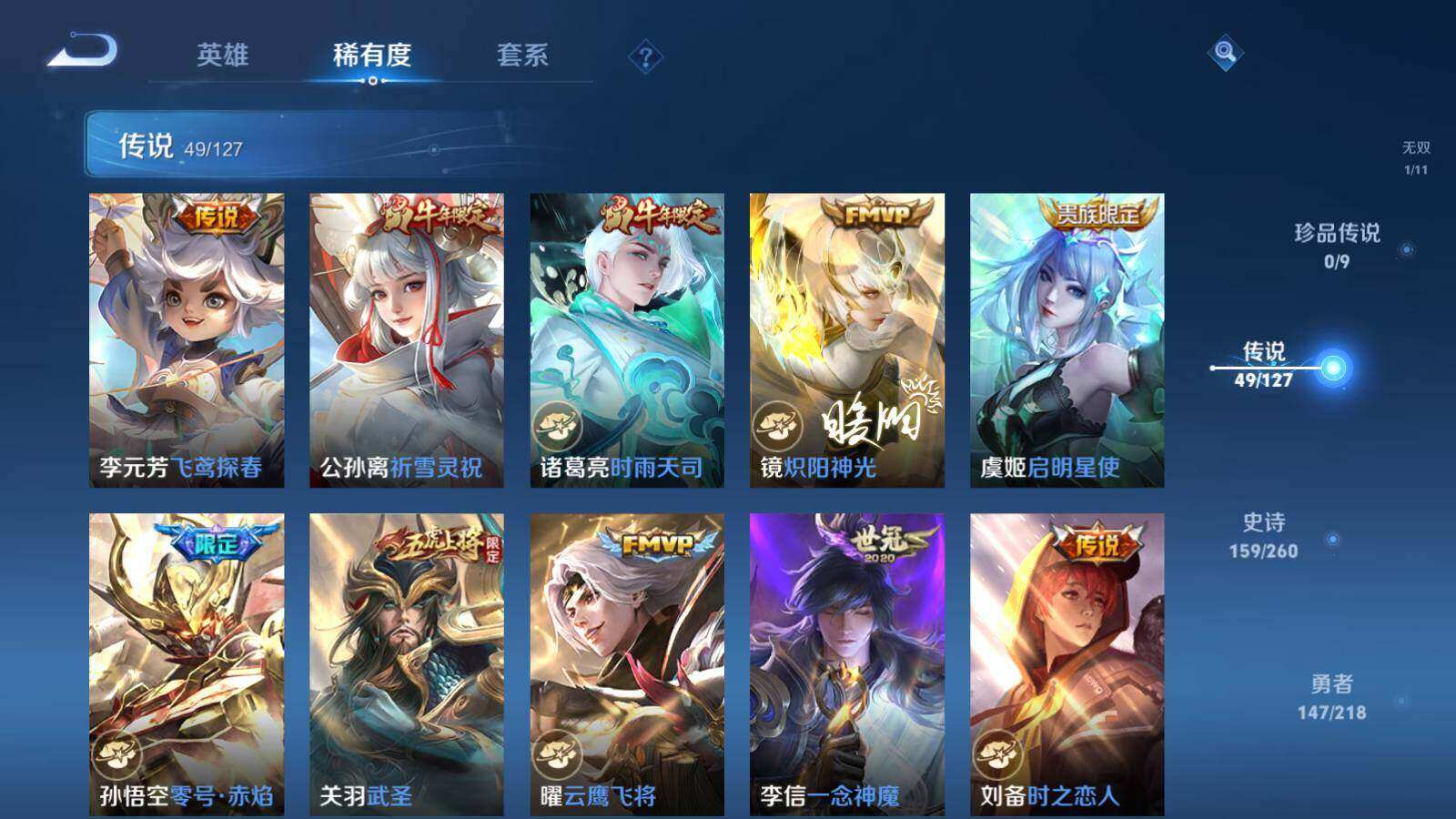 [13122087]安卓WX-V10-127英雄-448皮肤-3典藏-0珍品无双-1无双-0珍品传说-51传说-161史诗-3星元