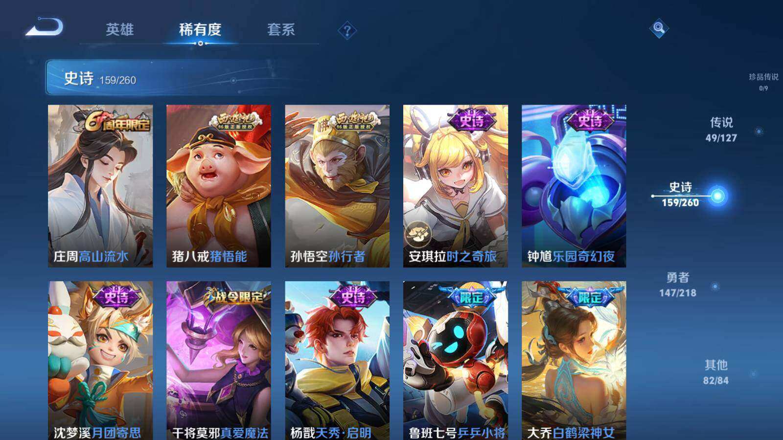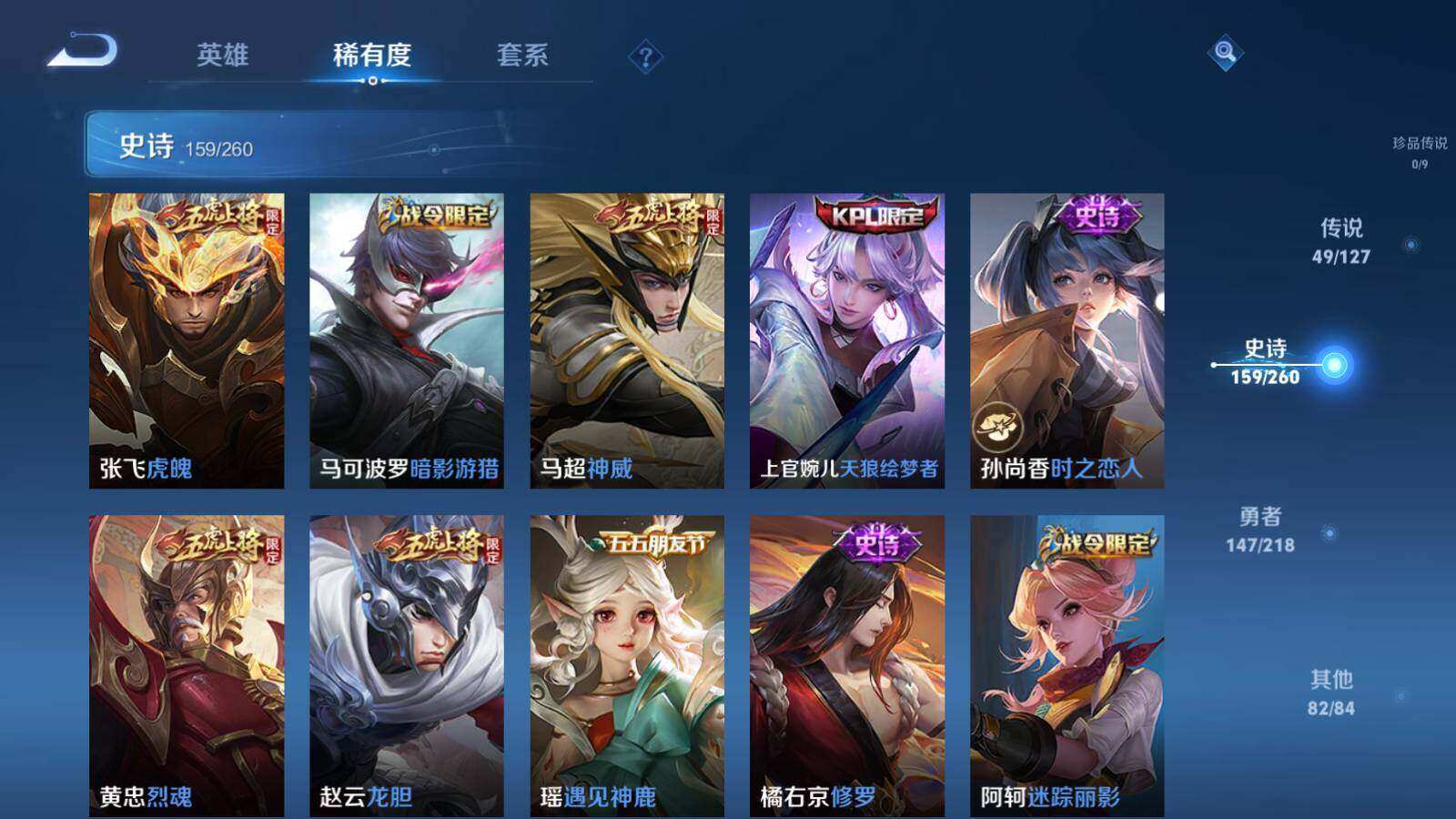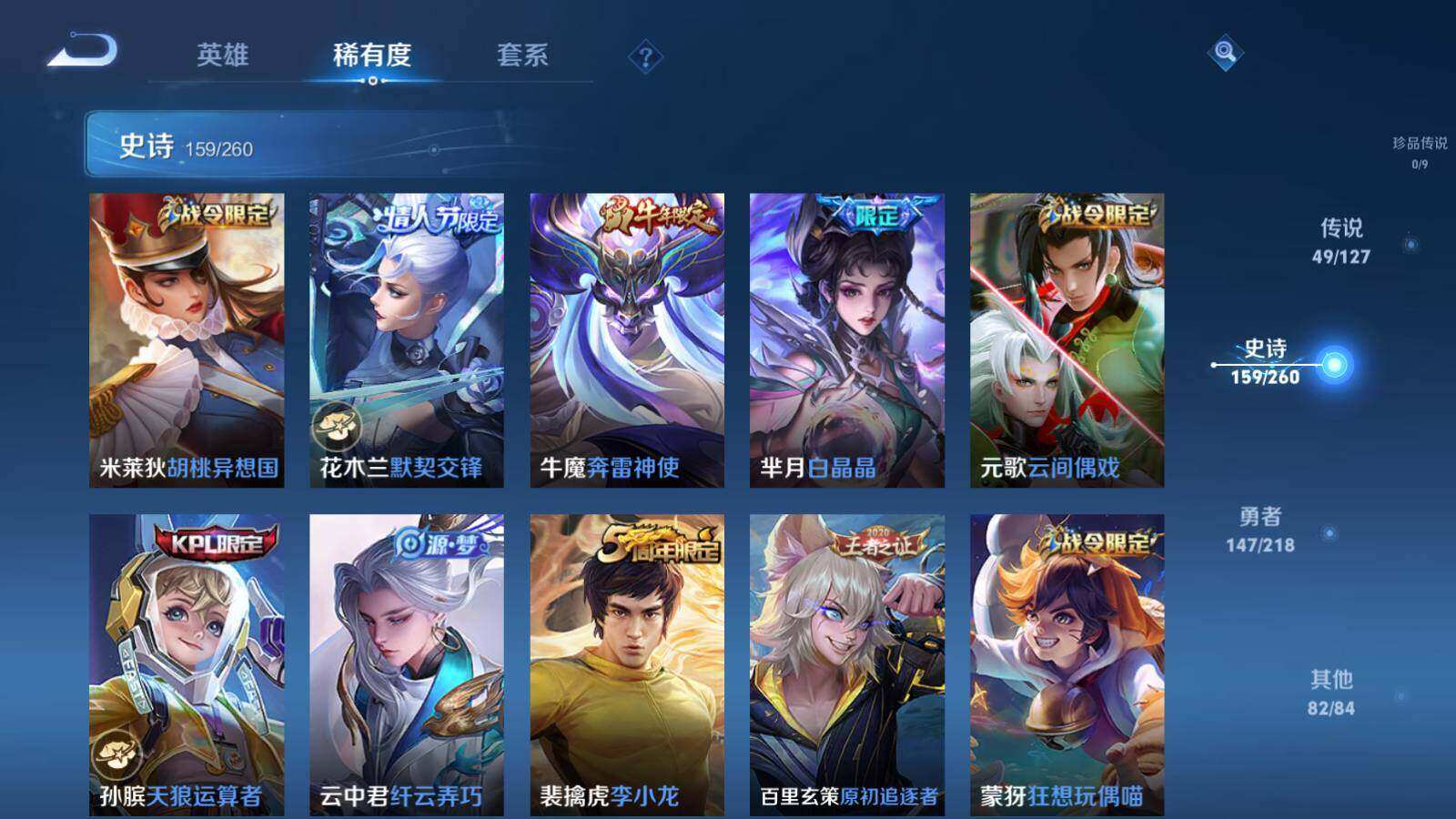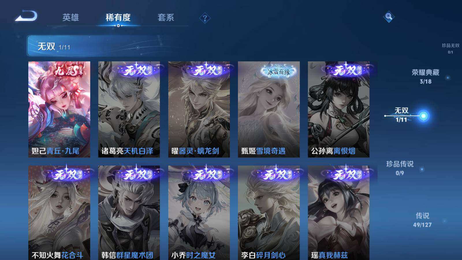 [13122087]安卓WX-V10-127英雄-448皮肤-3典藏-0珍品无双-1无双-0珍品传说-51传说-161史诗-3星元