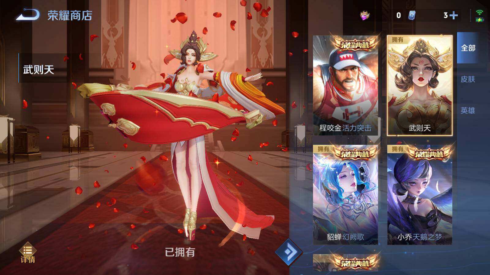 【荣耀典藏】:武则天英雄,武则天倪克斯神谕,小乔天鹅之梦,貂蝉幻阙歌