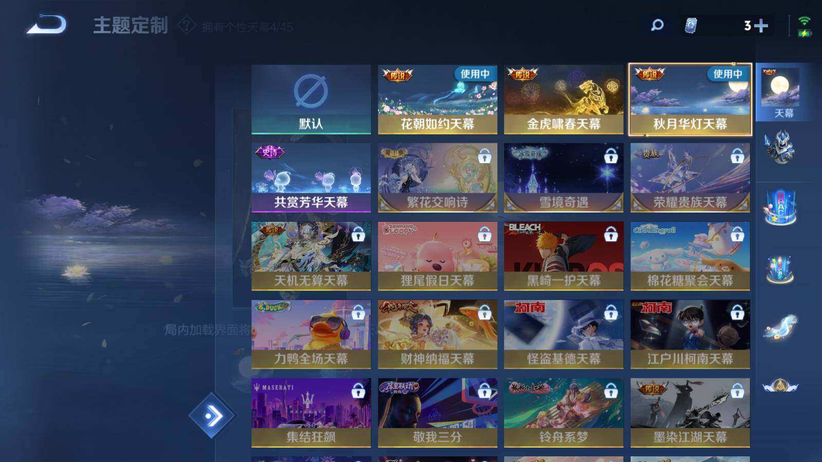 扁鹊炼金王,虞姬凯尔特女王,白起狰,太乙真人饕餮,盾山御銮,夏侯惇朔风刀,明世隐疑决卦,老夫子醍醐杖,鬼谷子原初探秘者,狄仁杰万华元夜,程咬金演武夺筹,钟馗驱傩正仪,苏烈千军破阵,鲁班七号狮舞东方,沈梦溪星空之诺,李元芳银河之约,刘邦夺宝奇兵,马可波罗暗影游猎,蒙犽狂想玩偶喵,元歌云间偶戏,弈星混沌棋,达摩沙漠行僧,兰陵王金庭之子,沈梦溪大漠名商,李元芳云中旅人,桑启海盐诗旅,裴擒虎擒涛扼浪,鲁班大师探海日志,张良古海寻踪